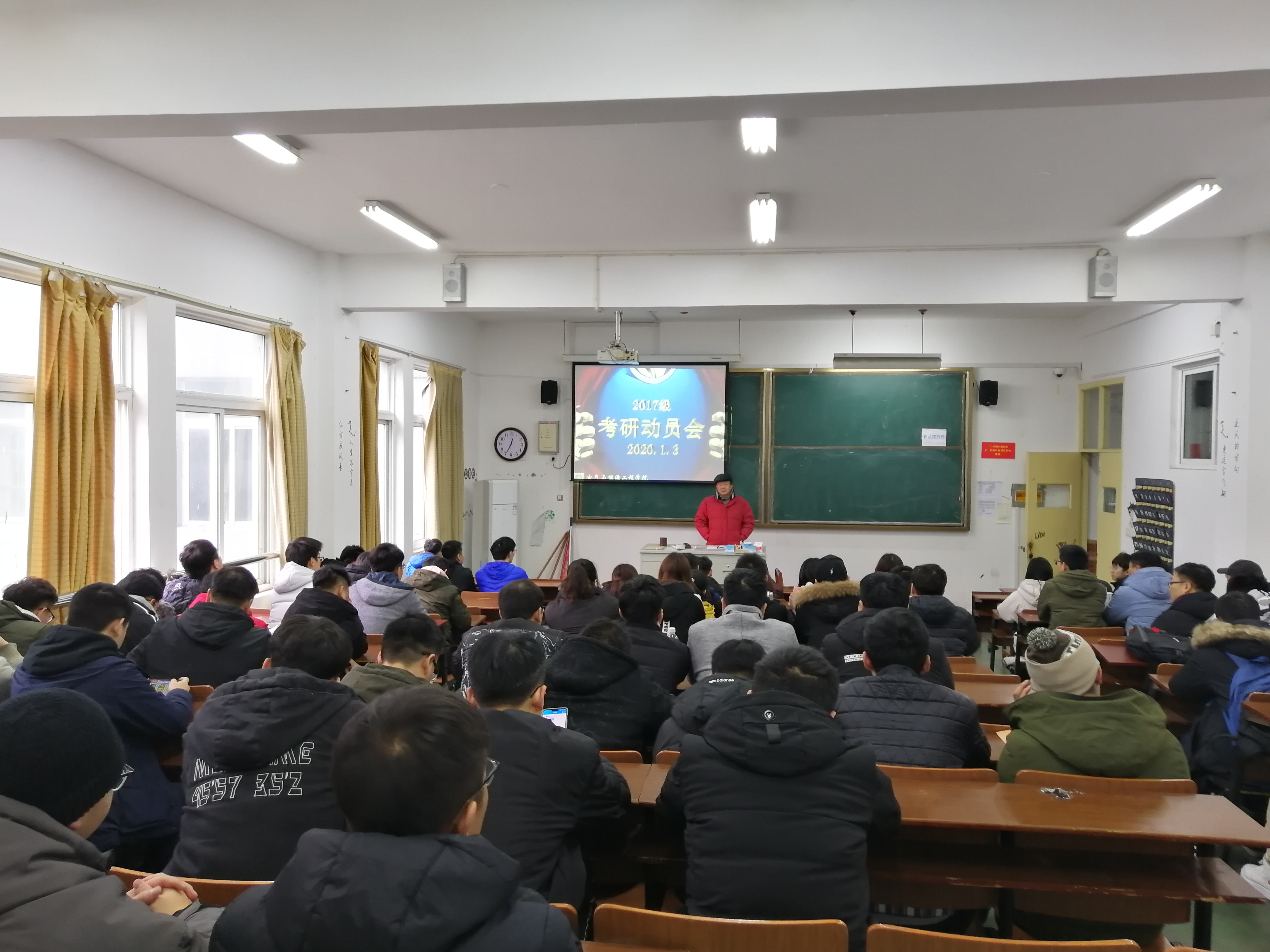 我院于1月3日在C- 214教室召开2017级考研动员大会,本次动员大会由吴建国院长主持,2017级有意愿考研的学生参与了此次会议。