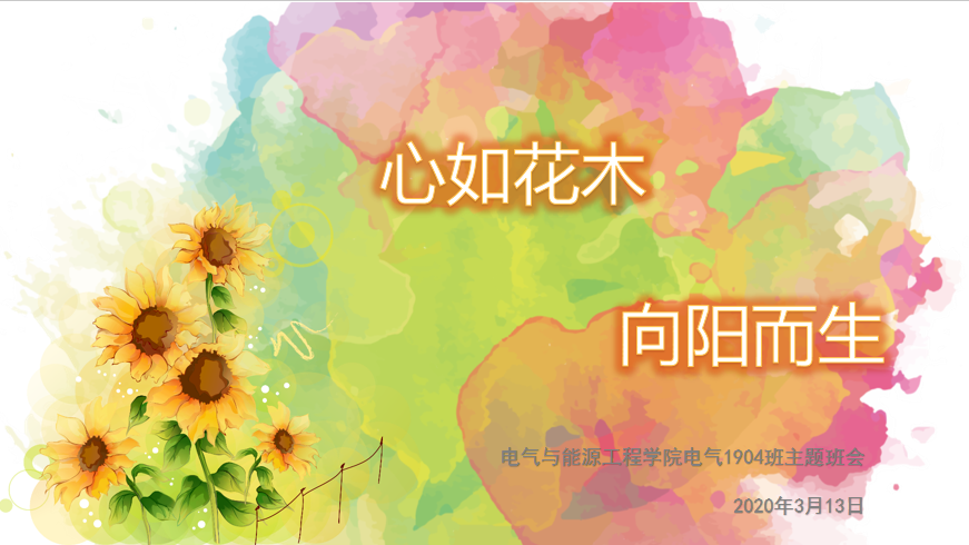 为了引导同学们形成正确的生命观,在抗“疫”期间做正能量的传播者,3月13日下午3点,在辅导员陈丹丹老师的主持下,电气与能源工程学院电气1904班在线开展了一场主题为“心如花木,向阳而生”的生命教育班会。