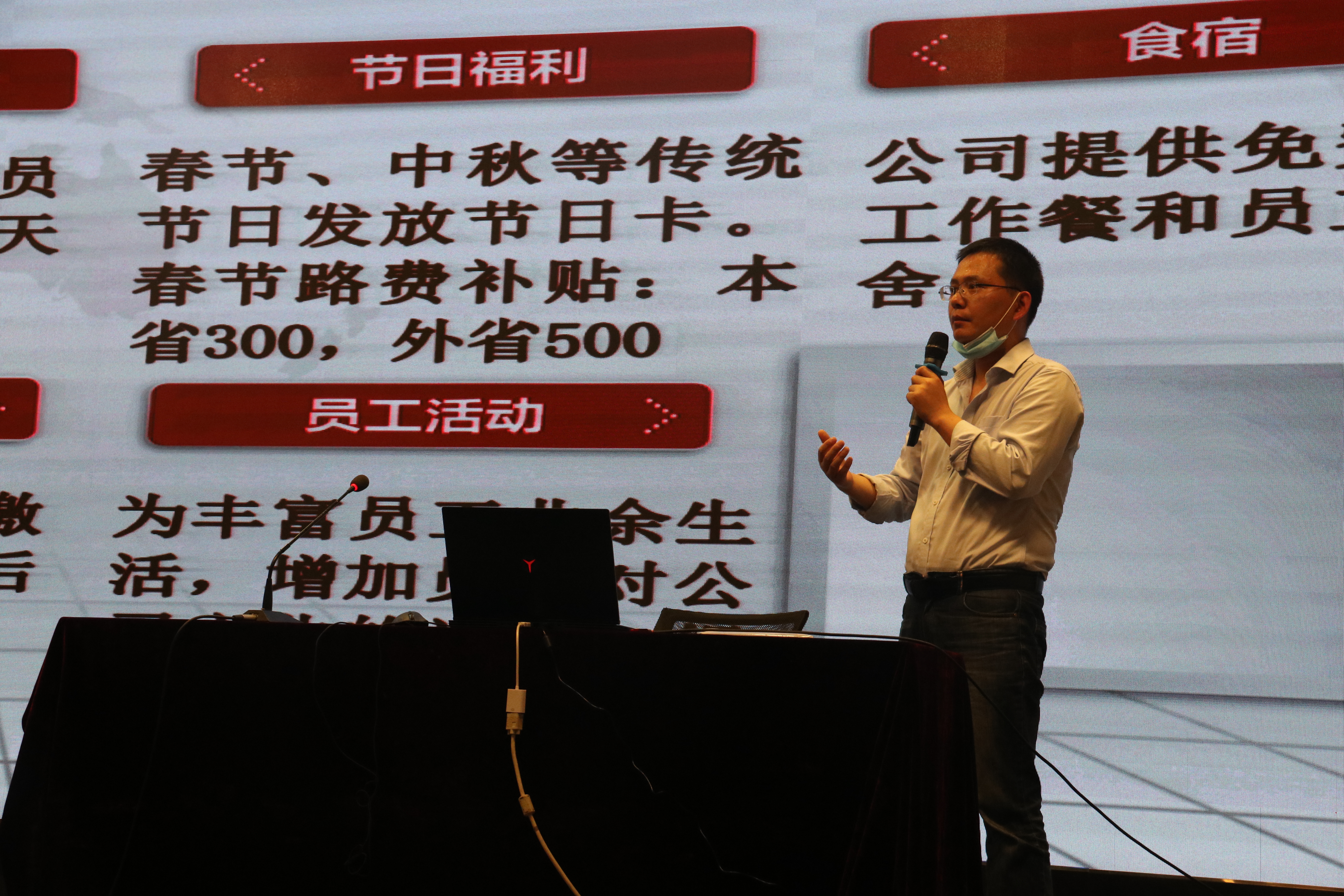 会议开始,朱经理直入主题,给大家分析本行业的就业形势。他表示,与往年不同,今年在疫情影响下,各大公司都受到波及,对外招收名额都有了一定下滑,大学生就业形势越来越严峻,希望同学们能够珍惜就业机会,主动就业。随后,朱经理从薪资待遇、晋升通道、福利待遇、招聘岗位这四个方面展示出力德尔是一个以人为本、追求卓越、实力雄厚的公司,并诚挚邀请大家加入力德尔这个大家庭,在这个平台上尽情绽放自己的光彩。
