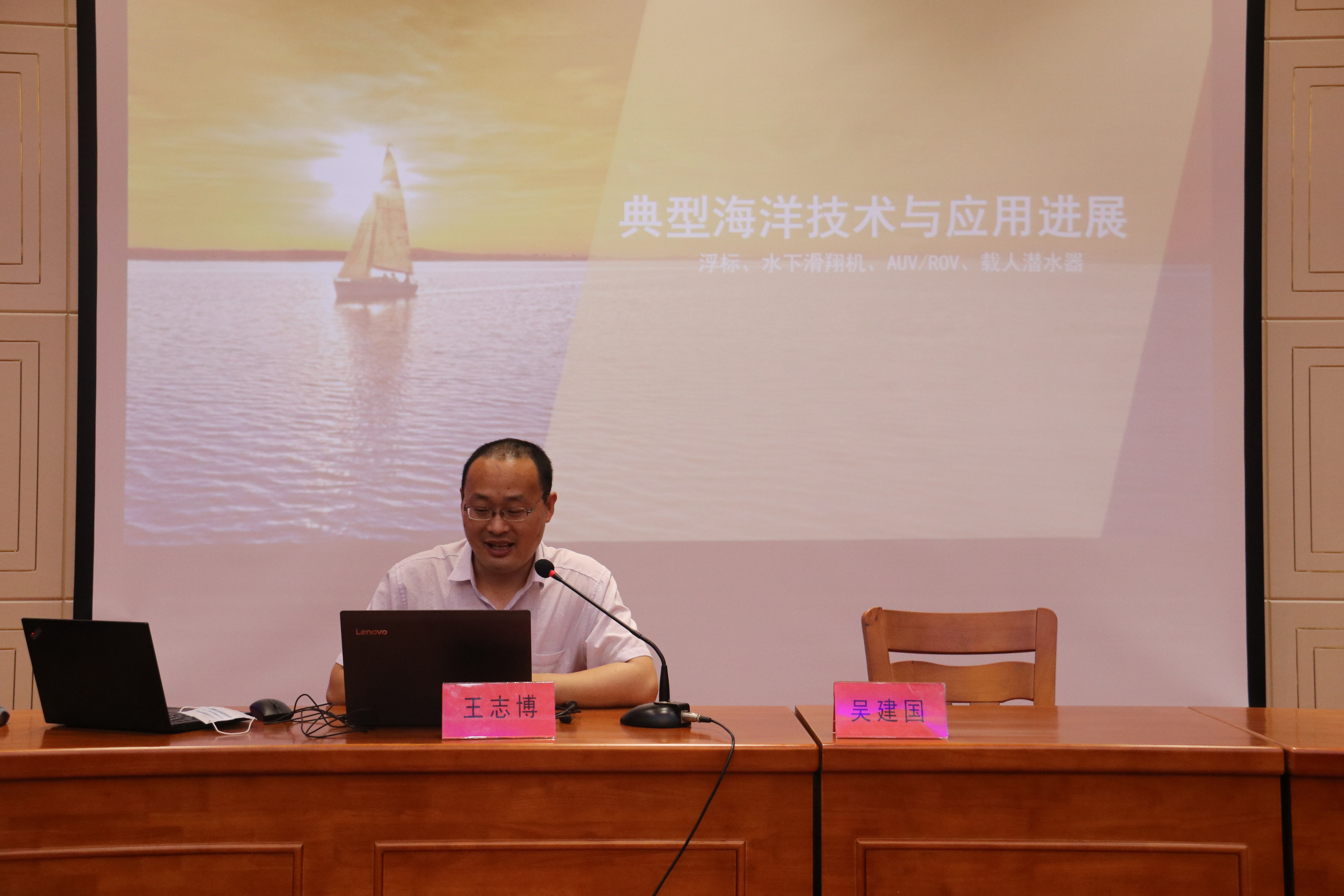 会议分为大会特邀报告与现场答疑两大部分,分别围绕浮标、水下滑翔机、ROV /AUV水下航行器、载人潜水器四大核心海洋技术进行交流。此外,王博士还通过多媒体向同学们展示我国新型海洋产品与相关领域的最新研究成果。他指出,建设海洋强国离不开海洋科技的进步与创新,海洋技术与装备的研究研发是一个至关重要的环节。随后,在场师生针对海洋技术提出问题,王博士依次进行解答。