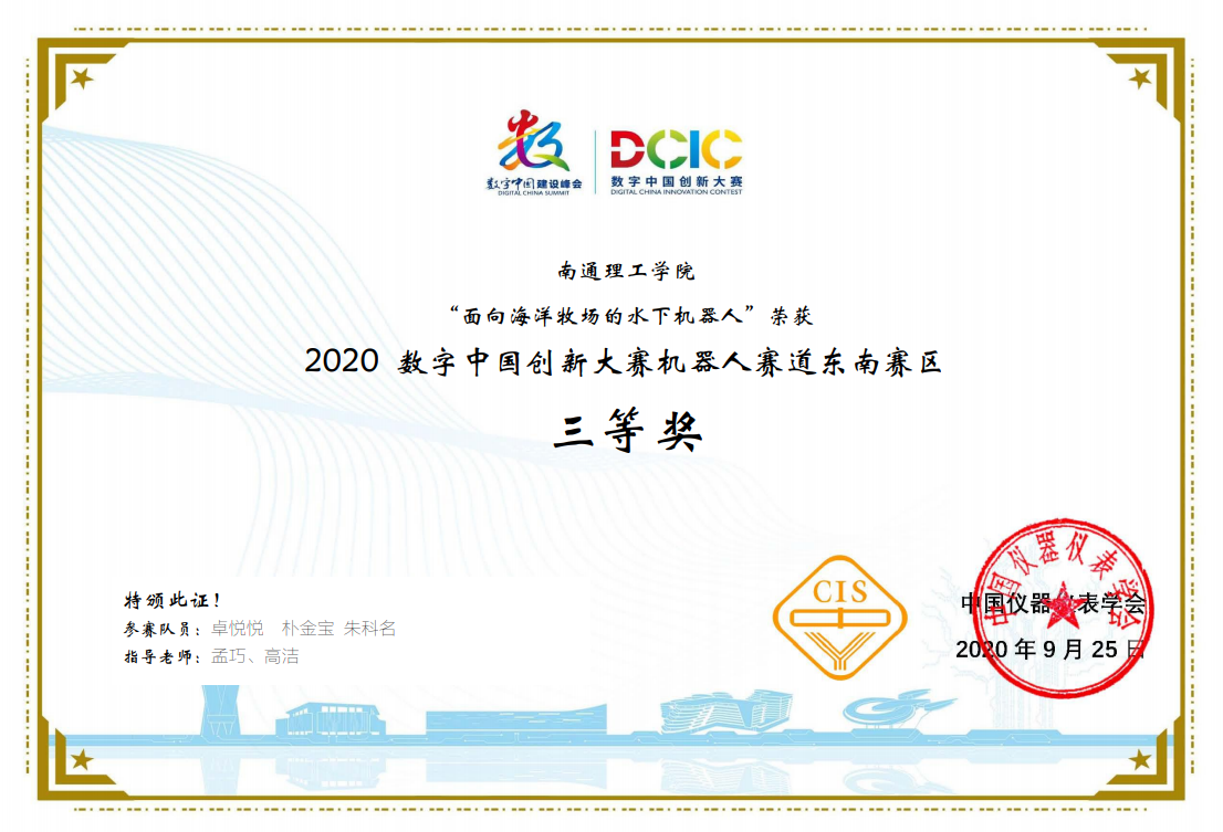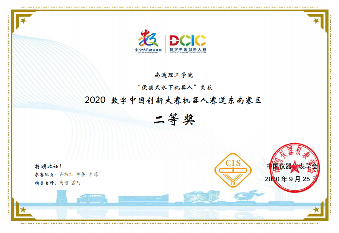 通过前期选拔与培训,我院两队学生作品在东南赛区“机器人赛道”中获得二等奖和三等奖的成绩,高洁、孟巧老师指导的《便携式水下机器人》荣获二等奖,《面向海洋牧场的水下机器人》荣获三等奖。