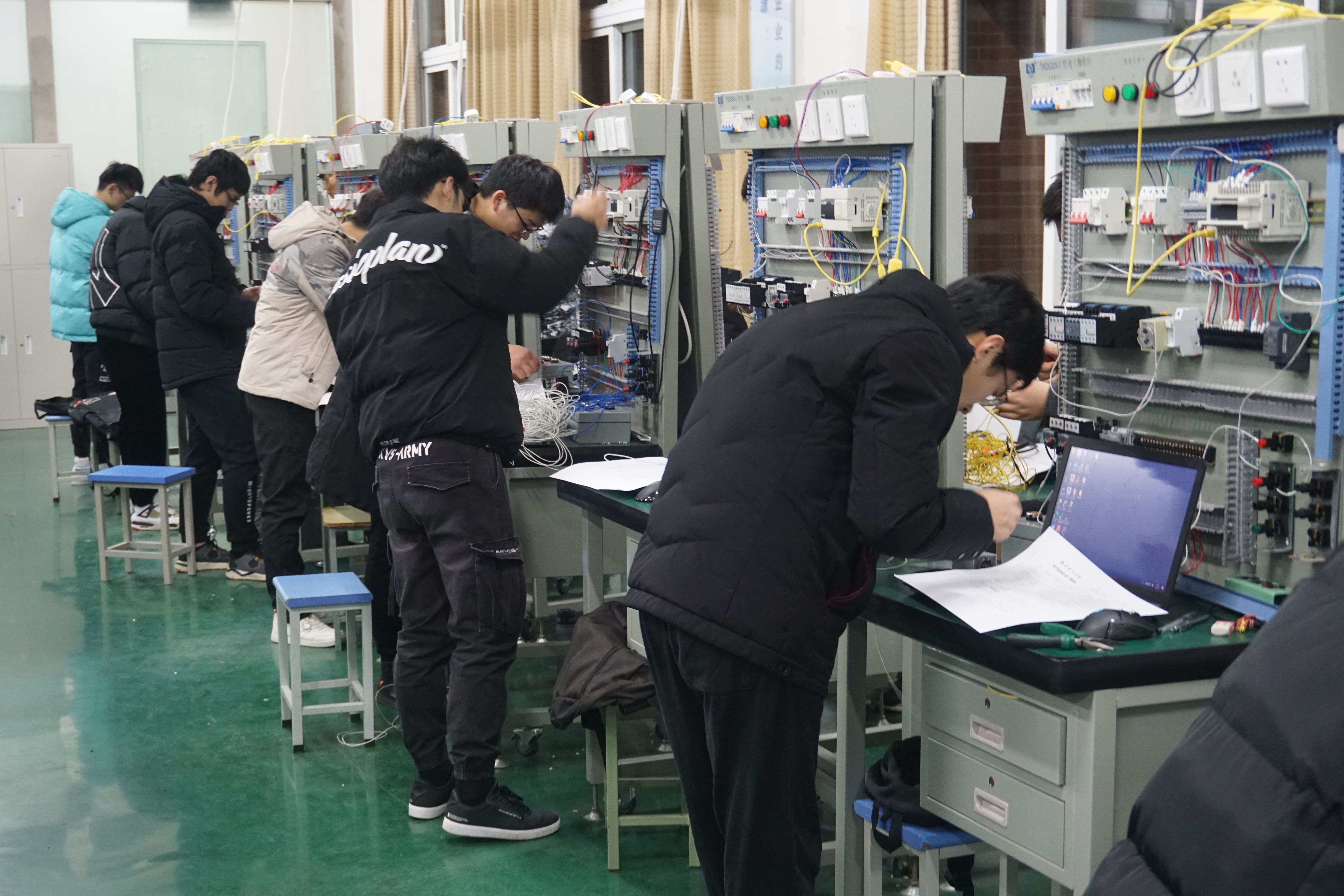 我院于1月5日18:00举行电气安装技能大赛,共有49名选手参赛。比赛分为两道试题:电气控制线路和PLC控制线路设计。比赛现场,参赛选手们心无旁骛,有条不紊地在机器上进行操作。指导老师严格要求,对每一个操作都认真检查,并为选手们加油打气。最后,所有选手都在既定的时间内高质量完成自己的作品,这考验的不仅仅是选手们的理论应用水平,更是对心态的挑战。