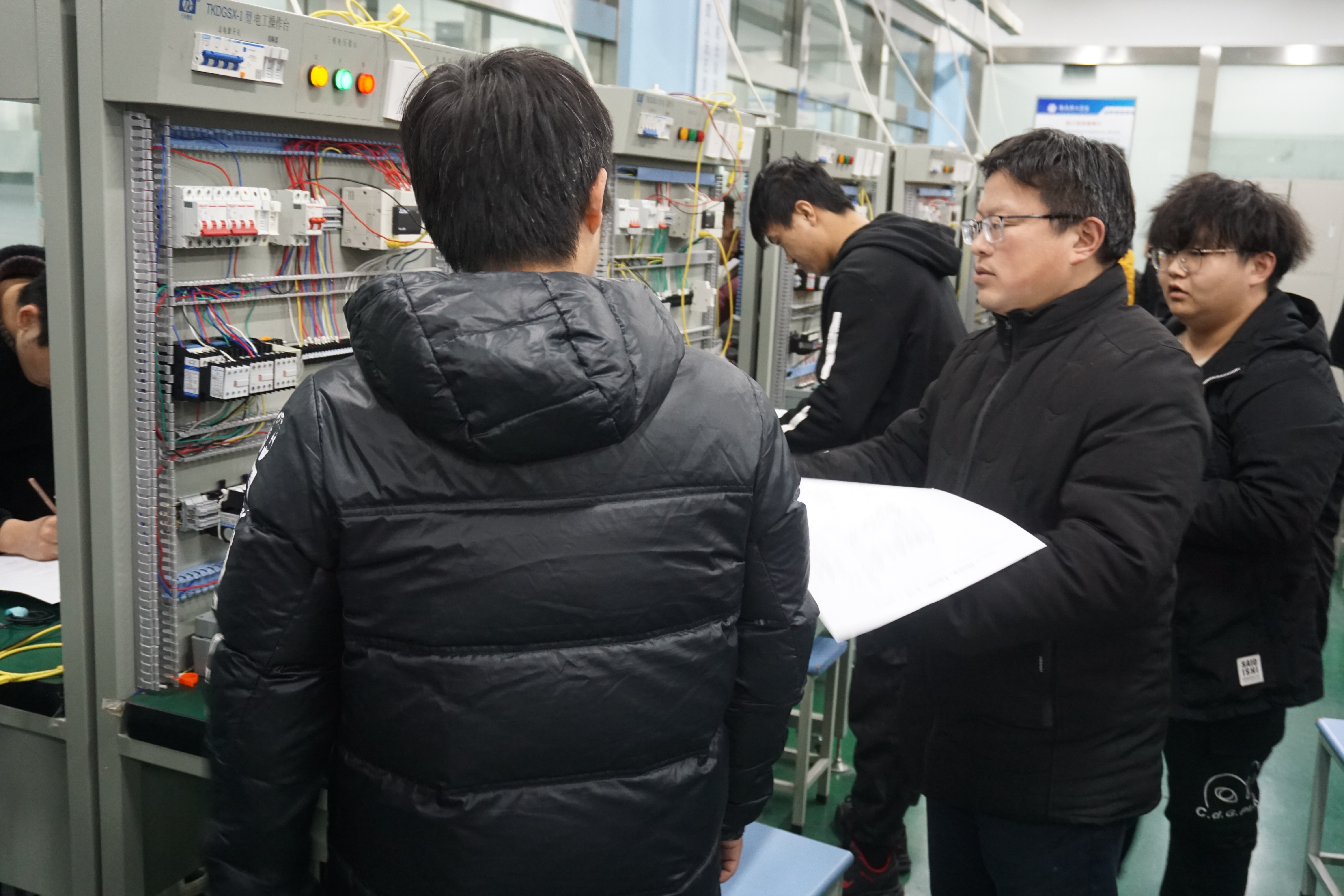 我院于1月5日18:00举行电气安装技能大赛,共有49名选手参赛。比赛分为两道试题:电气控制线路和PLC控制线路设计。比赛现场,参赛选手们心无旁骛,有条不紊地在机器上进行操作。指导老师严格要求,对每一个操作都认真检查,并为选手们加油打气。最后,所有选手都在既定的时间内高质量完成自己的作品,这考验的不仅仅是选手们的理论应用水平,更是对心态的挑战。