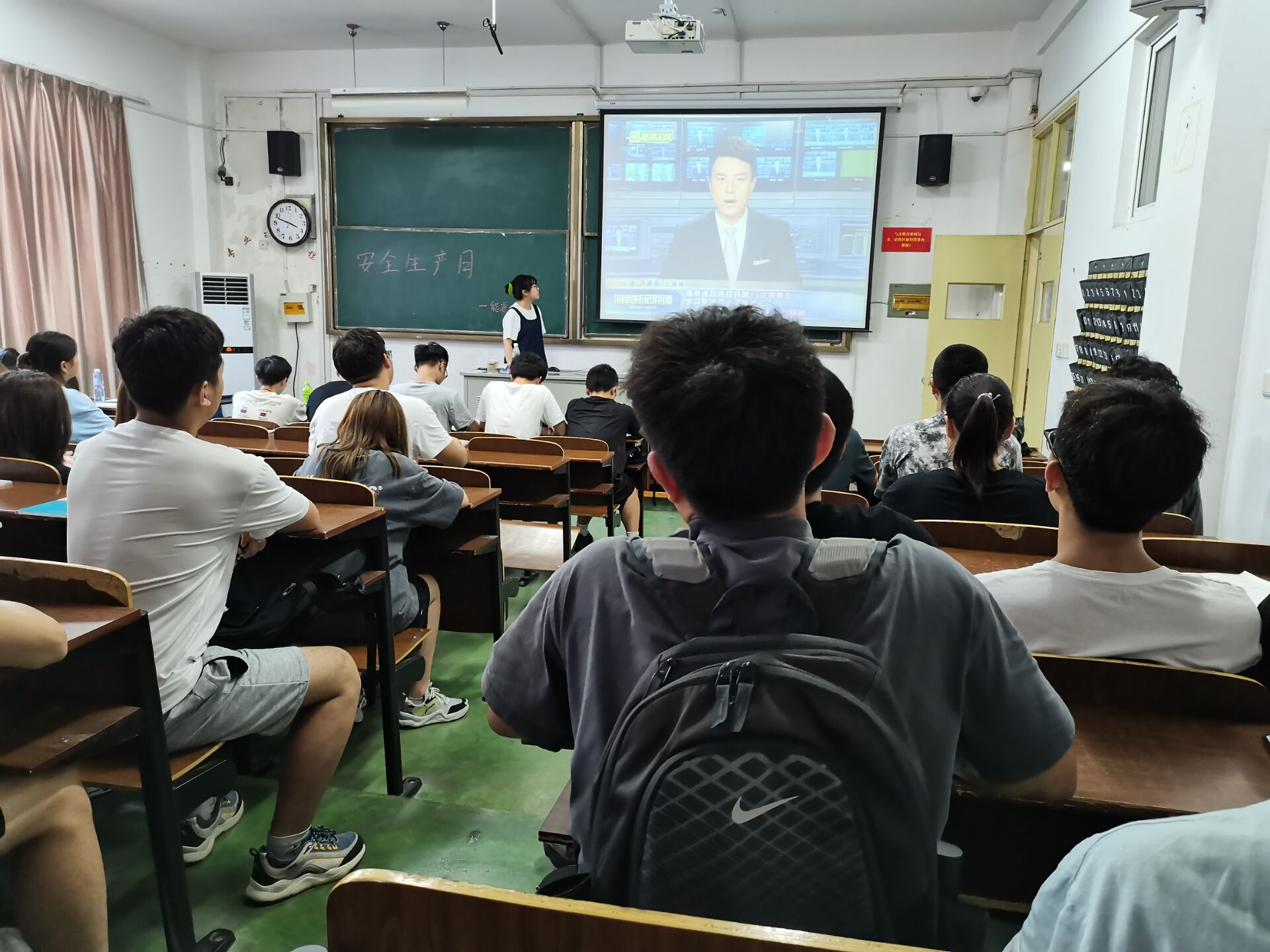 本次班会由宣传委员沈费琪主持,她向同学们强调了在宿舍使用电器的安全问题,并且希望大家可以继续保持宿舍以及教室的干净与整洁。随后,大家共同观看《生命重于泰山——学习习近平总书记关于安全生产重要论述》电视专题片,该专题片围绕安全生产的重要性详细解读了习近平总书记关于安全生产重要论述内涵要义,通过案例分析,以丰富的素材,夯实理论基础,强调做好安全工作,要全面树立安全发展理念,以及防患于未然的重要性。视频观看结束之后,沈费琪提醒大家暑期在家用电器仍须多加小心,外出旅游要注意自己的人身安全以及财产安全。
