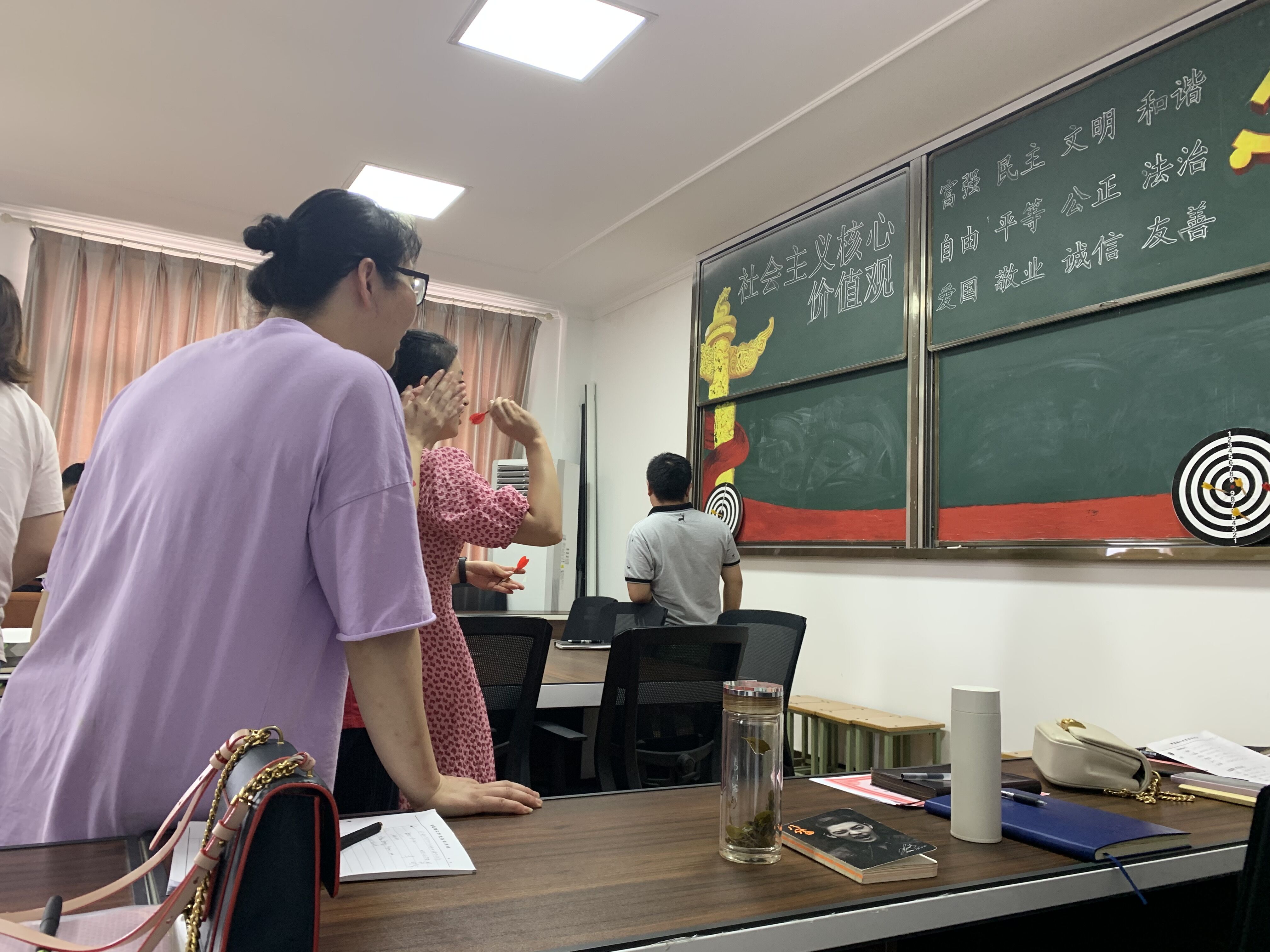 为了提升学院整体凝聚力,增进同事之间的情谊,活跃集体气氛,我院于7月16日在C-523举办首届趣味运动会,全院60多名教师热情高涨地参加了这次活动。趣味运动会以“凝心聚力,和谐共进”为主题,分团体赛和个人赛两大项,项目为飞镖射靶和夹乒乓球。