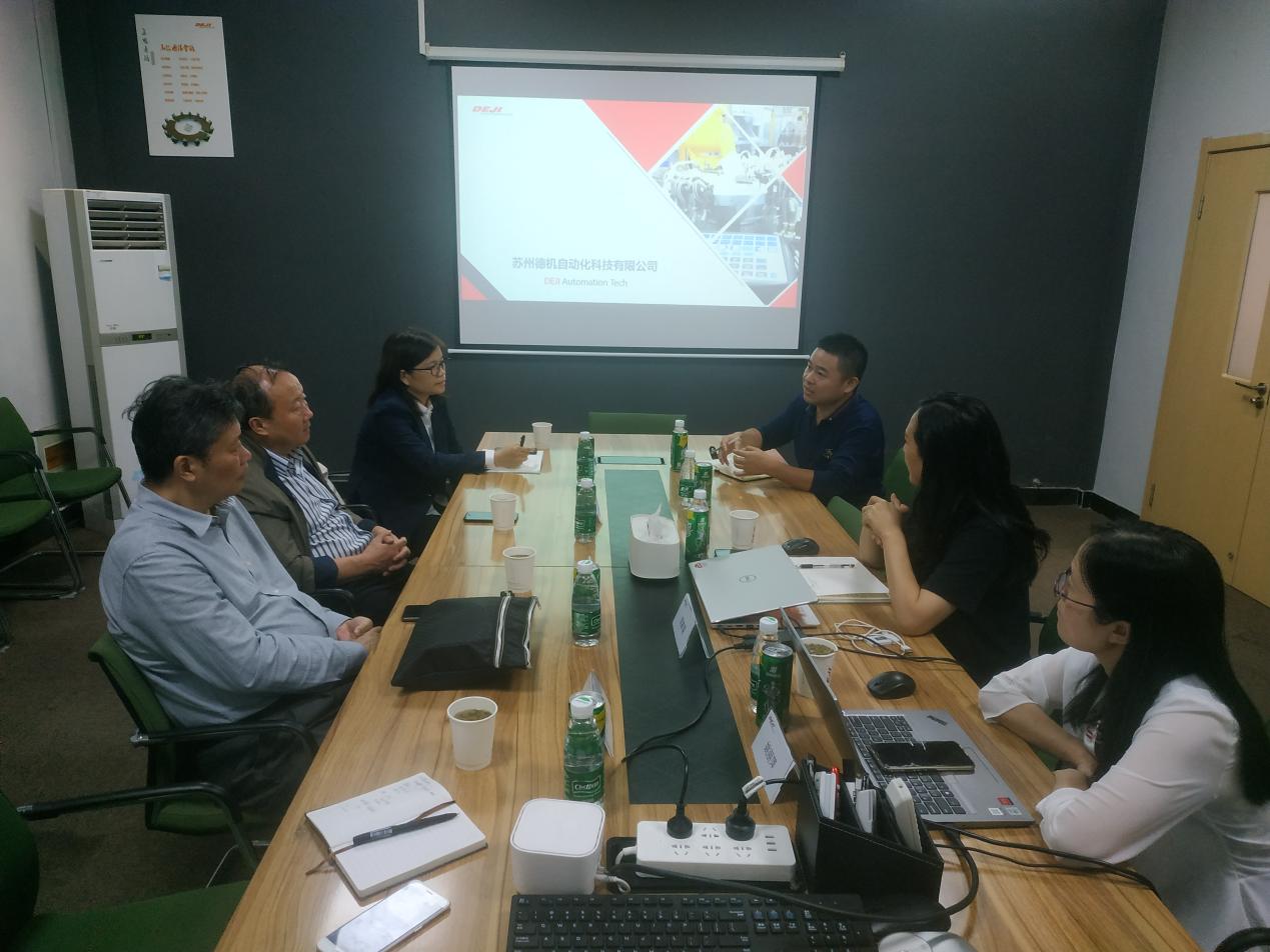 为及时掌握“3+1”人才培养工程学生的实习动态,深入了解学生在企业的实习情况、解决学生在实习中遇到的问题、帮助学生在实习企业寻找合适的毕业设计课题,10月13日下午我校教务处黄天成处长,电气与能源工程学院吴建国院长、卢卫萍副院长、新能源教研室主任刘俊峰老师一行赴苏州德机自动化科技有限公司考察调研。