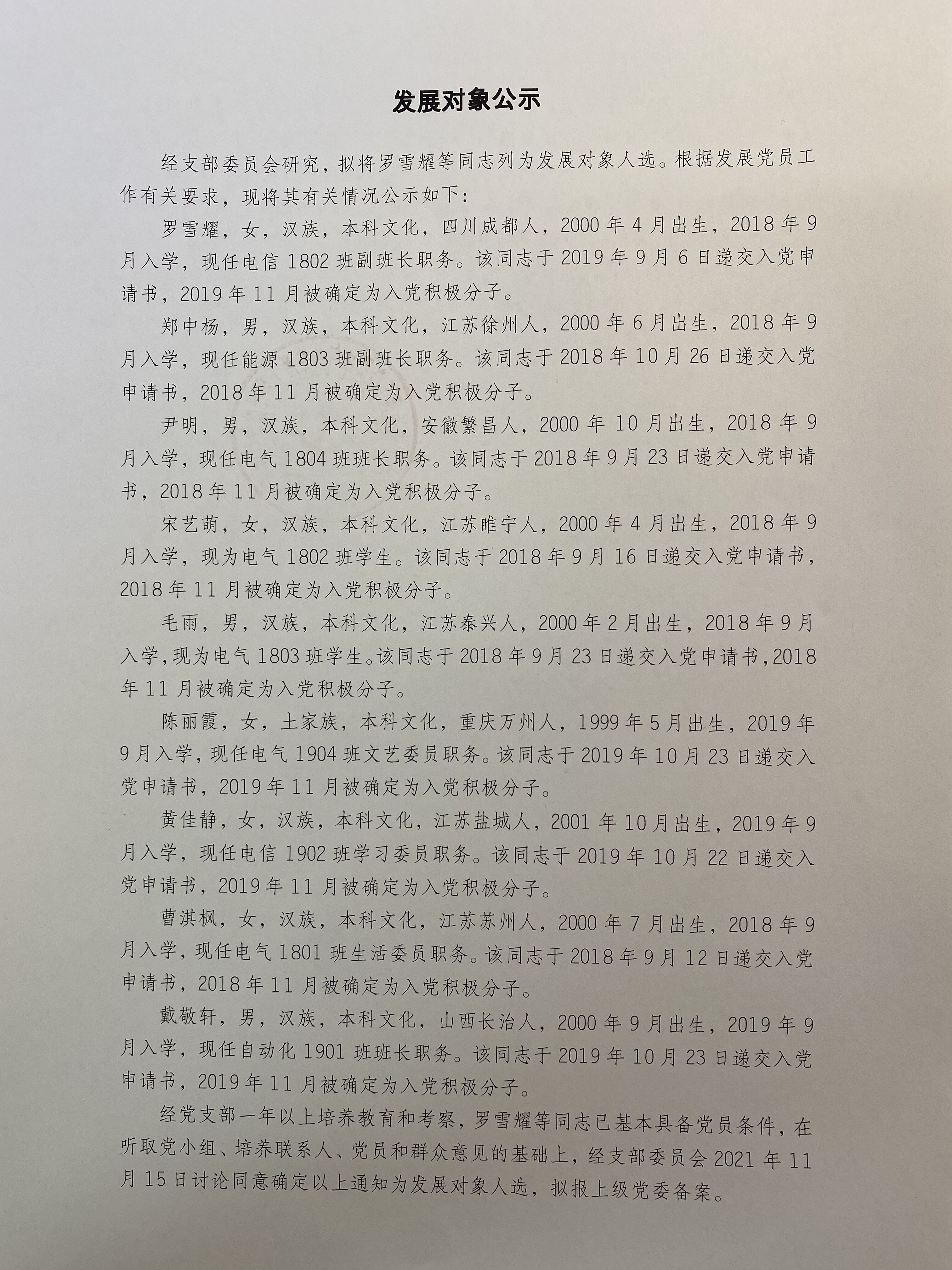 关于拟吸收罗雪耀等同志为发展对象的公示
