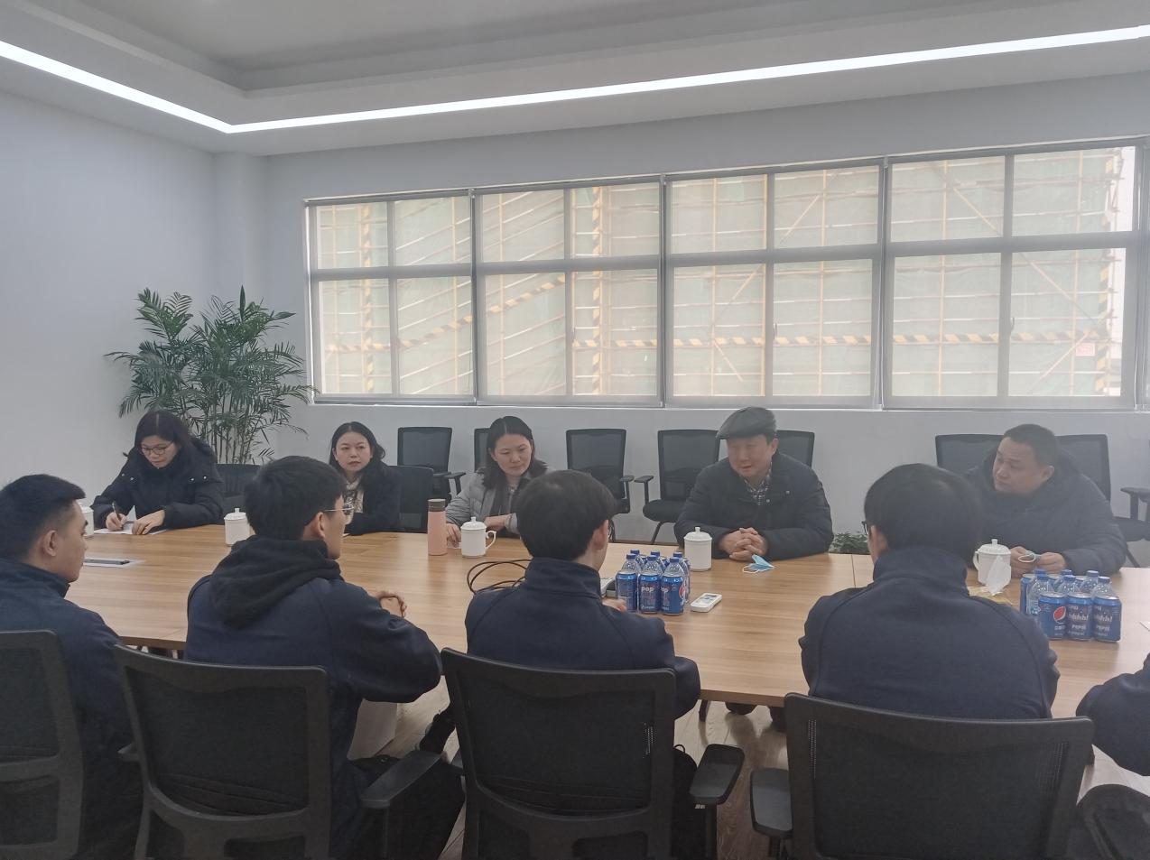 1月19日下午,我校招生与就业处处长张颖、副处长樊后文,科技与产教合作处副处长王凤琴,电气与能源工程学院院长吴建国、党总支副书记张小顺、副院长卢卫萍一行到江苏科瑞恩集团南通科瑞恩智能装备有限公司调研。集团公司副总裁许志刚、人事部经理罗梦然参与接待。
