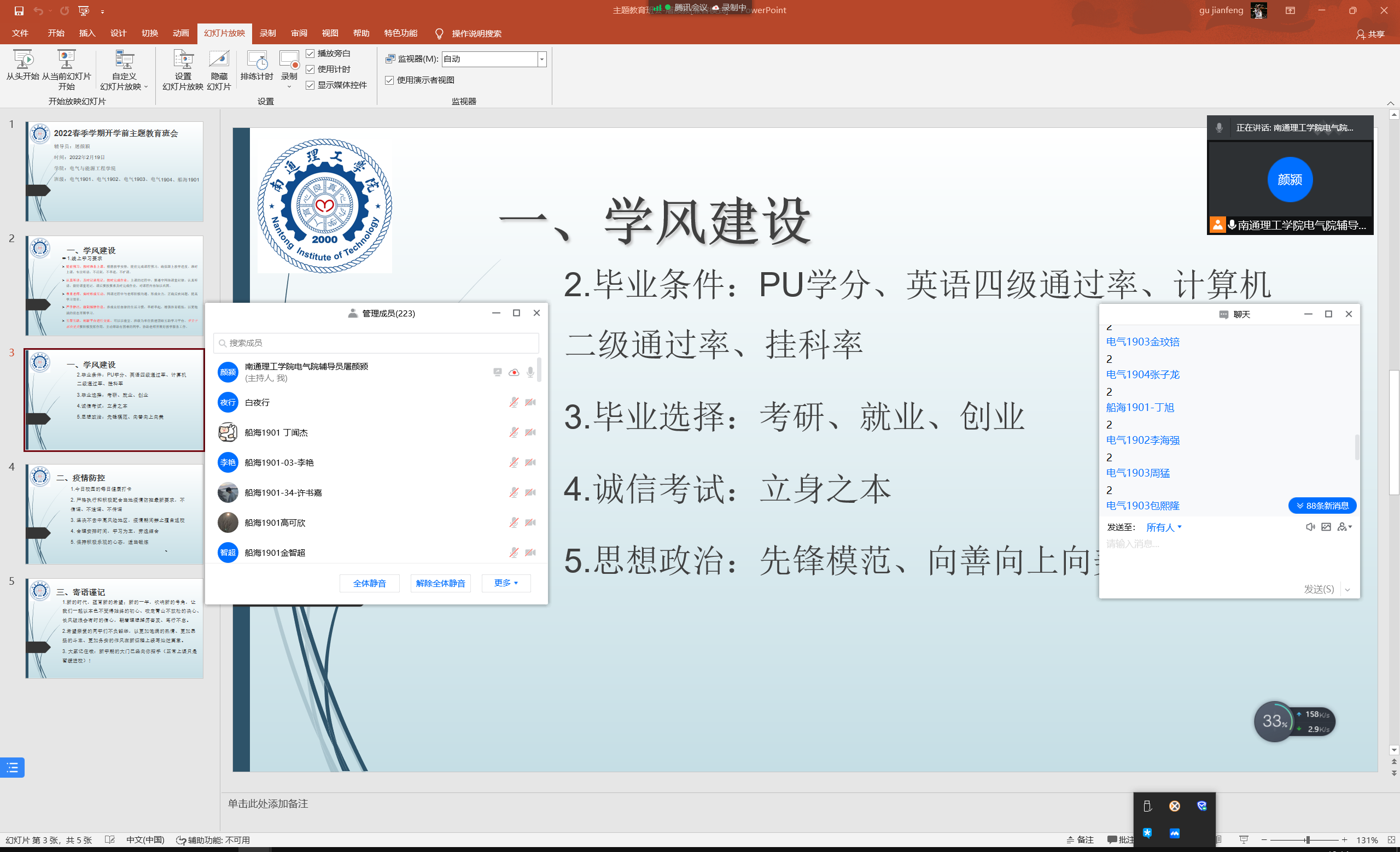 此次线上主题班会的顺利召开,提高了同学们的疫情防控意识,加强了线上学风建设,帮助同学们尽快调整好状态,为新学期各项工作的顺利开展打下基础。(文/摄 毕琨璇)