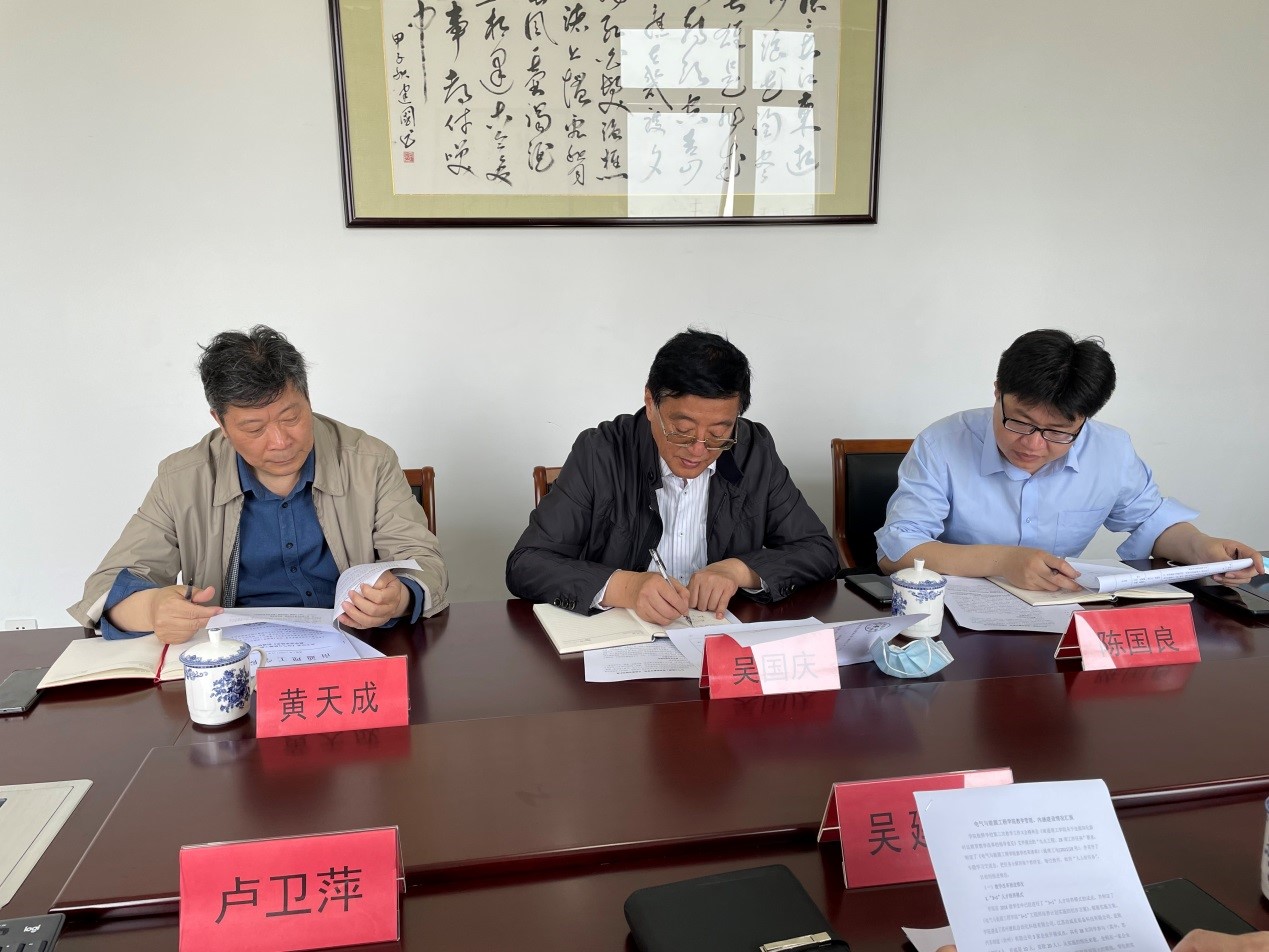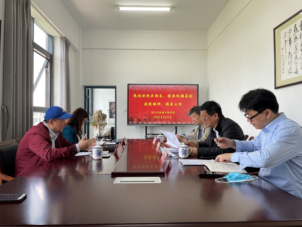 吴国庆副校长对学院的工作给予了肯定,他指出,电气与能源工程学院工作有特色,发展思路清晰,管理规范,在课程建设、信息化教学、产教融合、产业学院建设等方面均走在学校前列,随后就进一步抓好学院重点工作提出了明确要求:一要把握规律、凝练特色。专业建设应面向人才培养,着眼于行业企业需求,打造专业特色,凸显专业优势,为申报省级一流专业做好充分准备;二是要求学院尽快确定好申报重点学科的目标,整合资源,创新机制,力争成功申报重点学科;三是紧紧围绕产教深度融合、专业工程认证,进一步修订2022版人才培养方案;四是加大力度引进学术带头人、专业带头人。