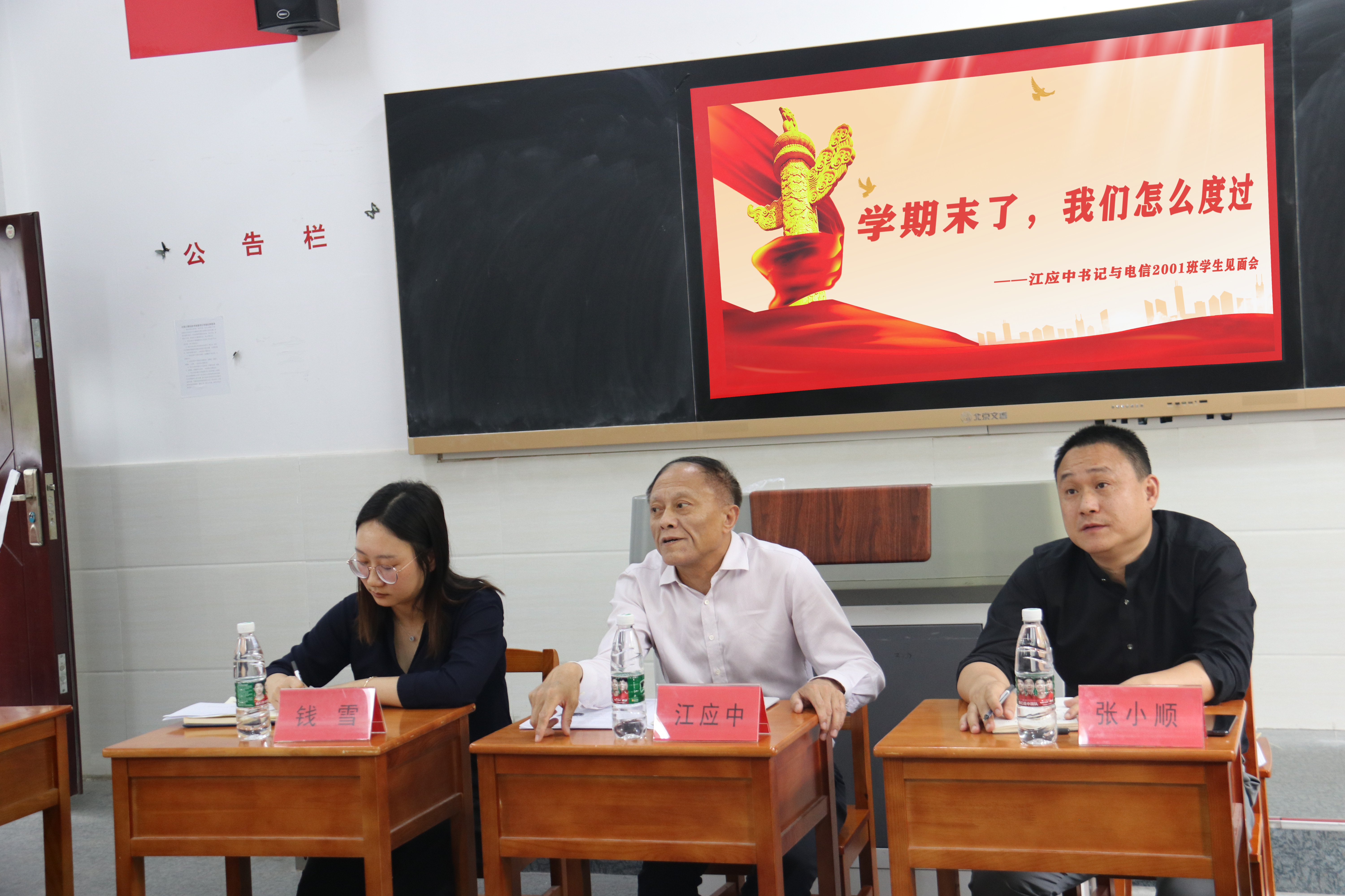 5月31日下午,电气与能源工程学院电信2001班在C-203开展以“如何规划学期末的学习和生活”为主题的交流会。班主任校党委书记江应中,院党总支副书记张小顺,辅导员钱雪参加交流会。会议由钱雪主持。