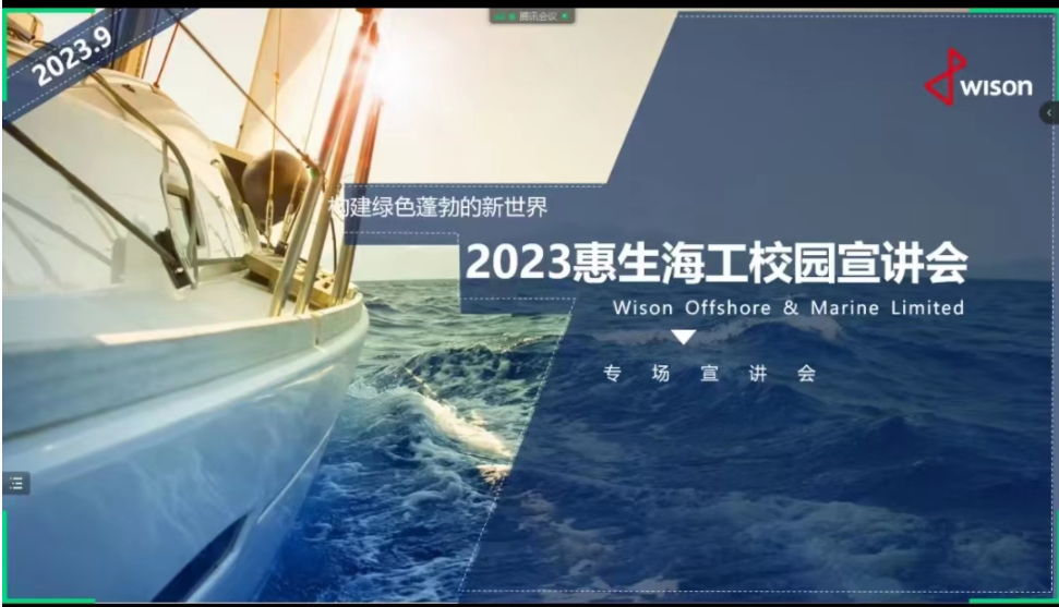 为切实做好实习就业工作,我院于9月27日上午9:50举行惠生(南通)重工有限公司专场宣讲会(线上)。本次宣讲会由惠生人事部薛娇主讲,2023届电气、船海、电信专业学生参加。