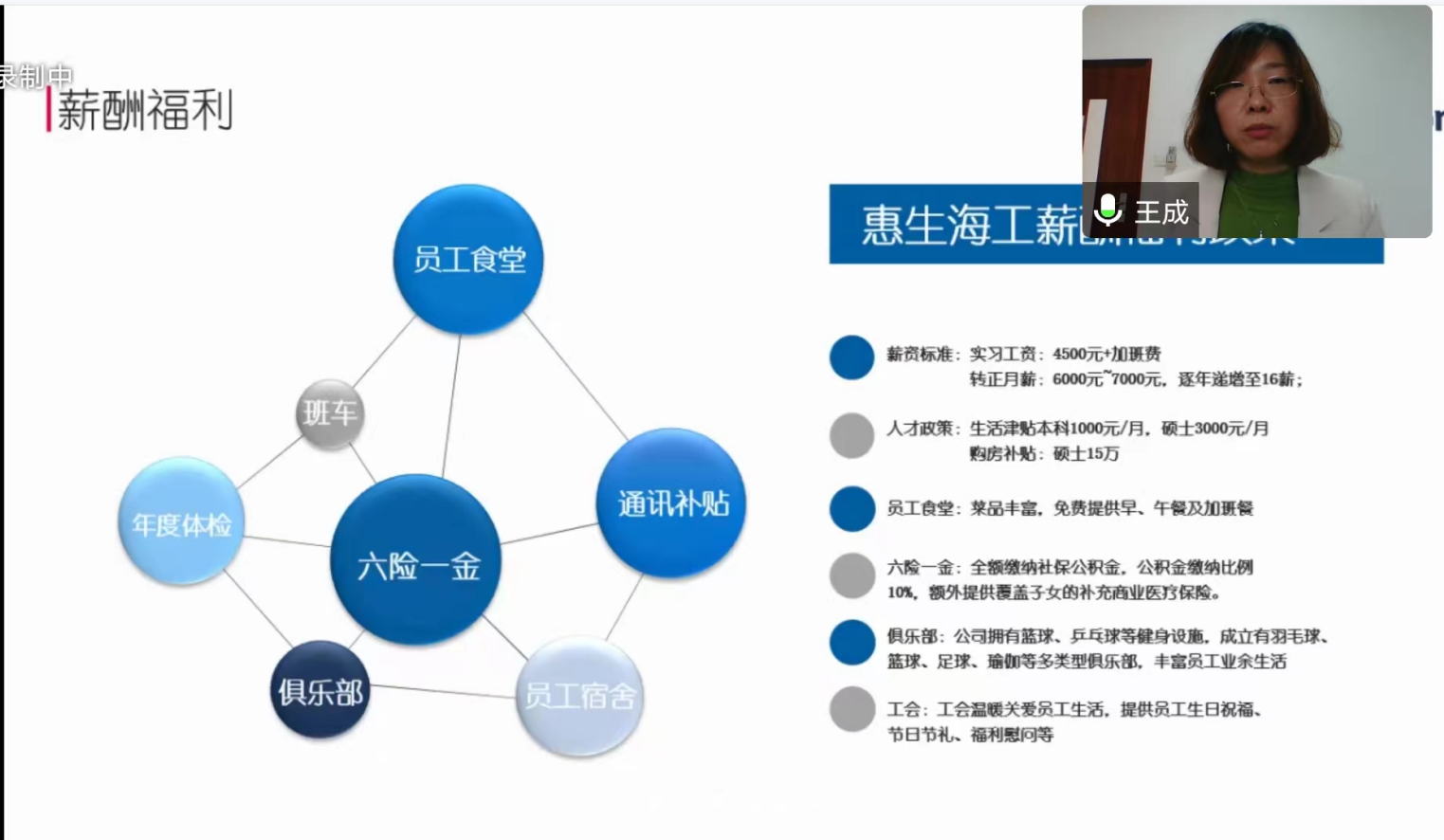 薛娇从企业发展、主要业务、岗位职责、福利待遇等方面对公司进行了介绍,她表示,公司以海洋油气工程装备和模块作为核心业务,是全球领先的 LNG 浮式系统解决方案提供商,在浮式液化天然气设施、海上风电、模块建造及调试,高端船舶和海上起重设备等领域具有成熟经验,同学们进入到惠生会有很多的发展机遇。