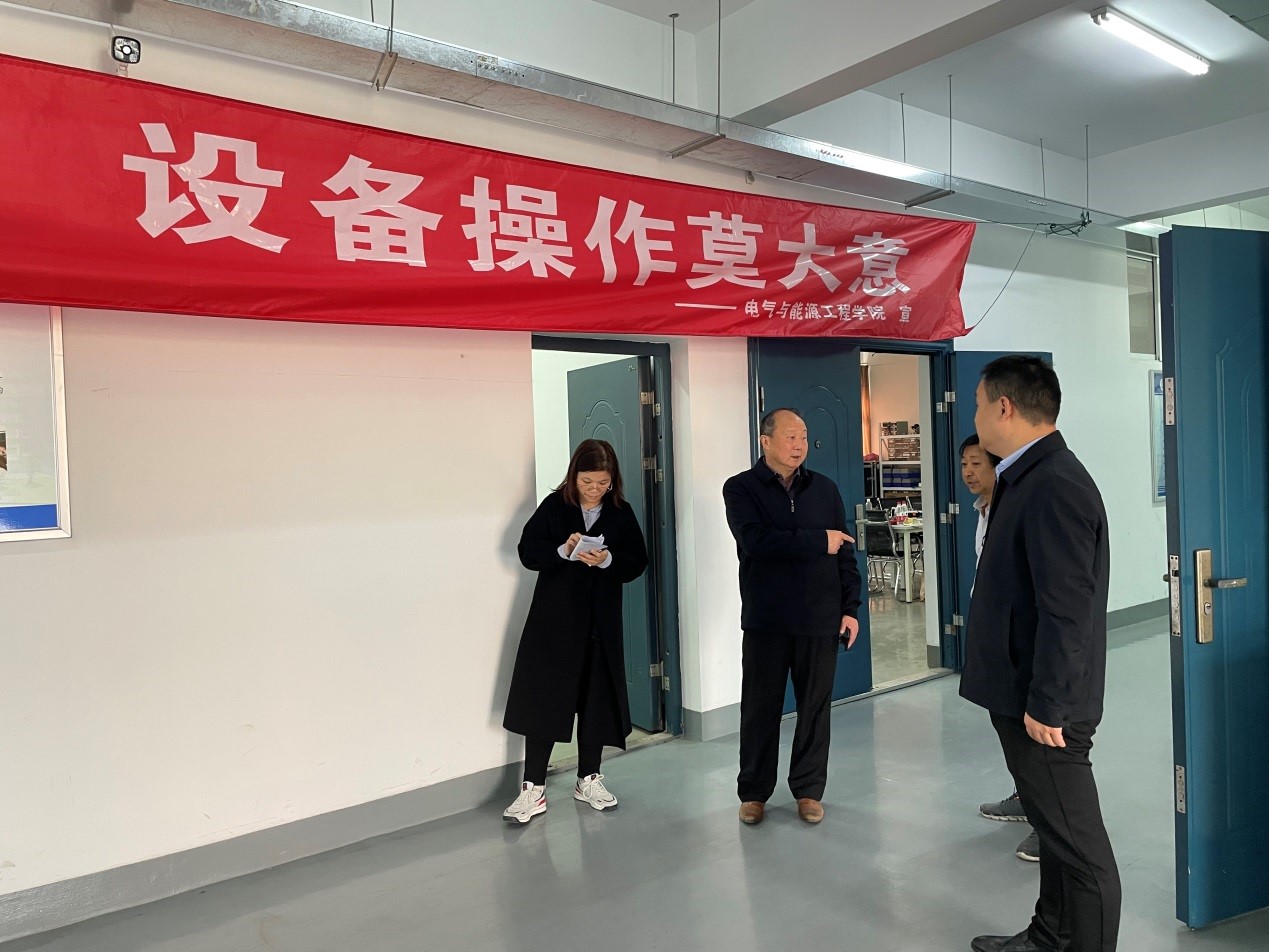 为贯彻落实省教育厅关于实验室安全有关文件精神,按照学校实验室安全宣传月的统一部署,进一步加强实验室安全管理,消除安全隐患,确保学院实验室安全稳定,11月10日上午,电气与能源工程学院院长吴建国、党总支副书记张小顺、副院长卢卫萍、带领学院安全小组成员和各专(兼)职实验室管理员对学院实验室进行了全面安全大检查。