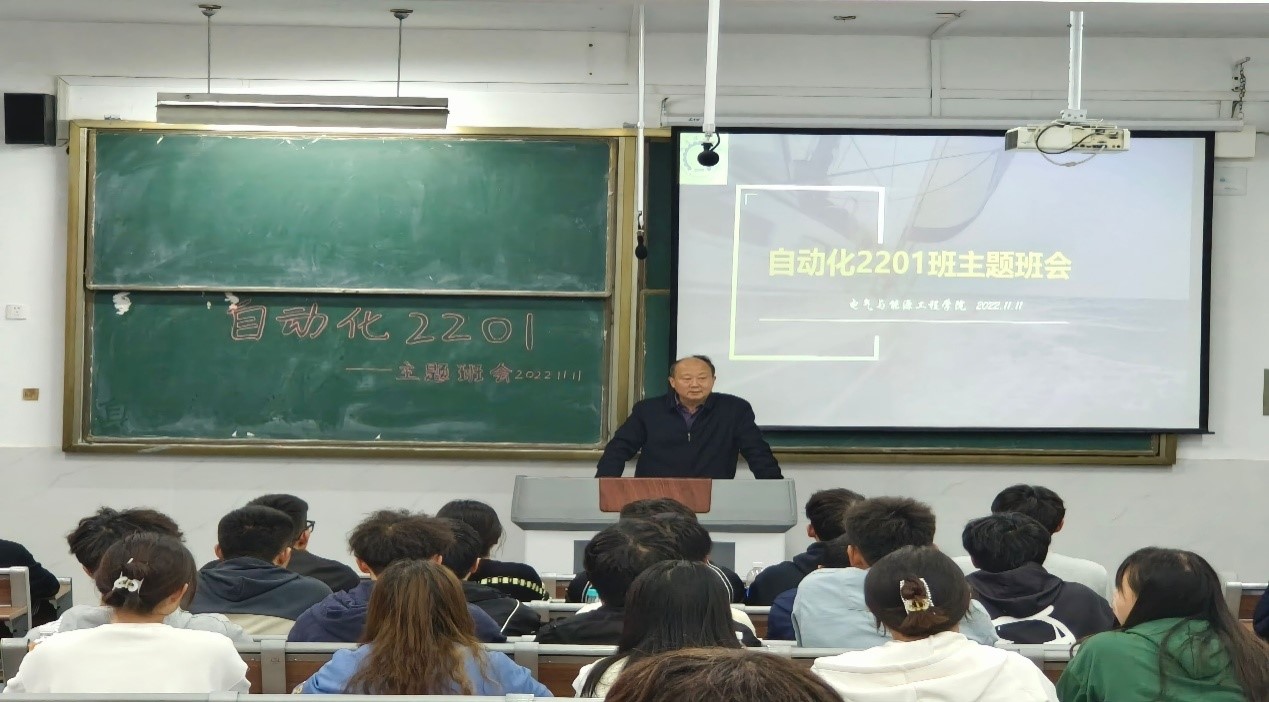 11月11日下午,电气与能源工程学院自动化2201班举办了大学学业规划交流,以及“我所认识的自动化”主题班会。班主任、电气与能源工程学院院长吴建国教授,辅导员韦广中,以及学院新生辅导员、班主任参加了本次班会。