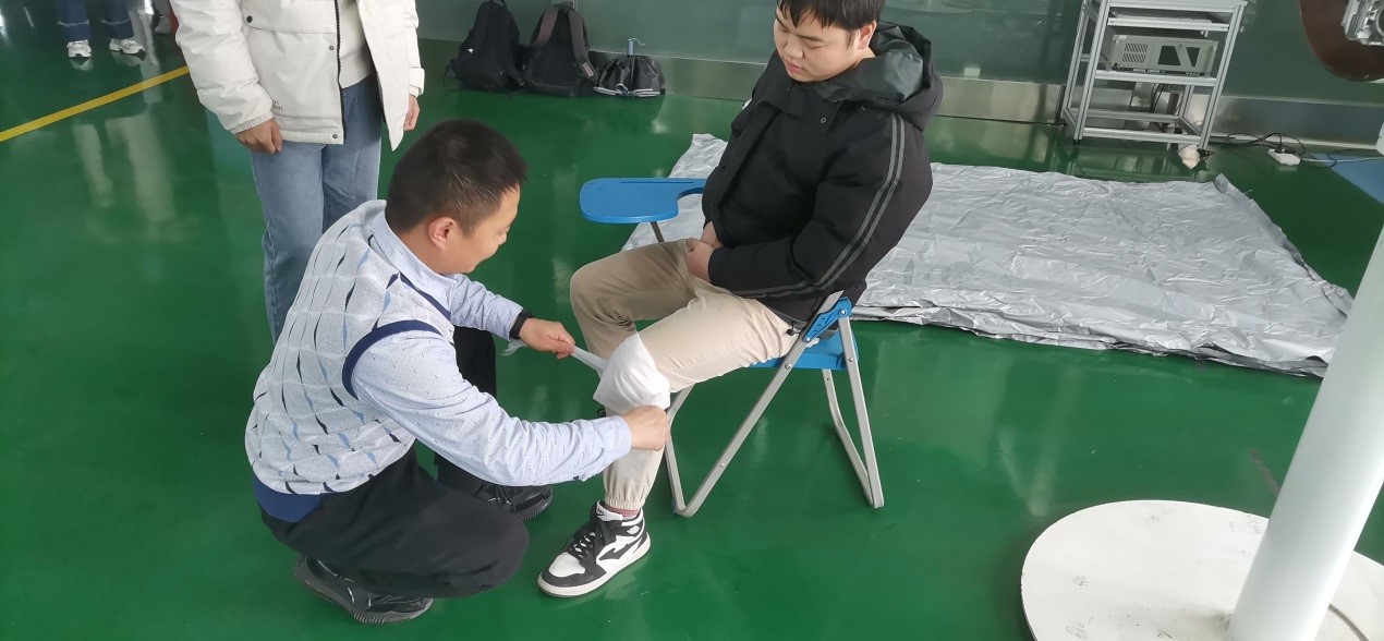 根据学院实验室安全应急演练方案,演练分为实验时严重触电事故处置和磕碰伤应急包扎处置。触电演练过程中指导老师第一时间进行了安全断电和脱离电源专业处理,并逐级上报,利用前期急救培训知识技能,触电事故得到了及时迅速妥善处理。在磕碰伤演练中主要模拟了伤口消毒处理和包扎过程。