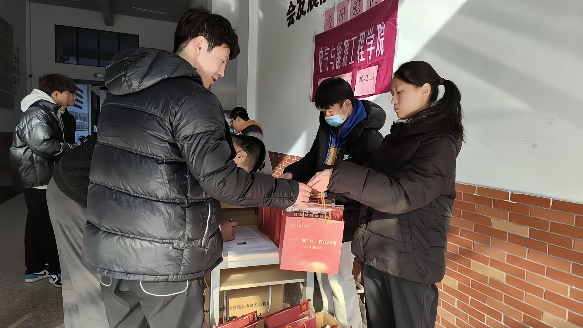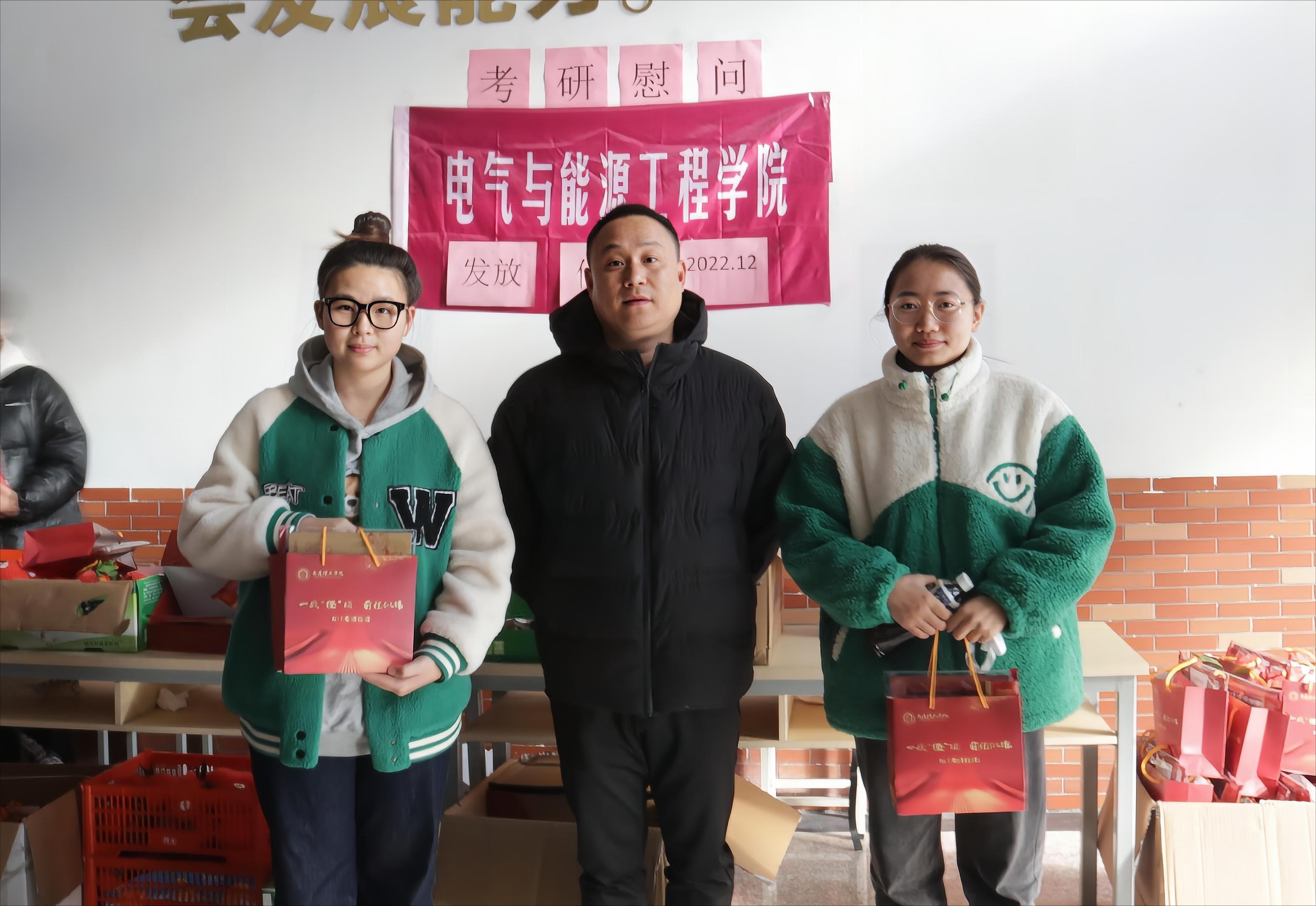 为增强考研学子的备考信心,调整备考状态,缓解考研压力,让考研同学迎接即将到来的考试,12月7日下午,电气与能源工程学院在电气楼103举办了考研慰问礼品的发放仪式,在寒冷的冬日为考研的学子们送上温暖的祝福,激励大家心存未来、笃志前行。本次活动由我院党总支副书记张小顺,分团委副书记黄橙,电气学院学生会主席傅其昌以及2023届全体考研学子参加。