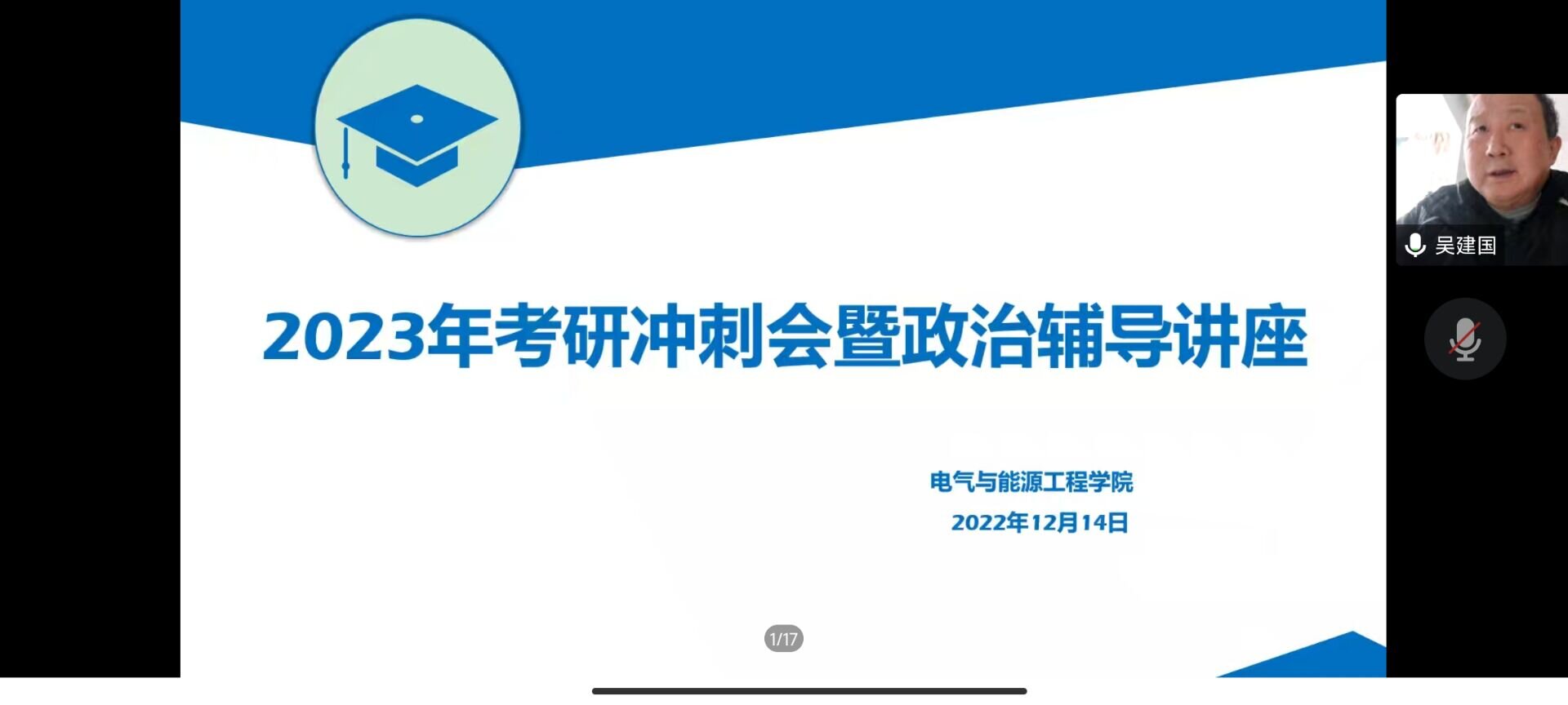 2023届学生考研复习已经进入了最为紧张的阶段,为进一步激发考研的热情,鼓舞考研士气,坚定考研信心,缓解备考压力,我院于12月14日下午在线上举行了2023年考研冲刺会暨政治辅导讲座。本次会议由我院院长吴建国、南通大学邵德进教授及2023届全体考研学子参加。