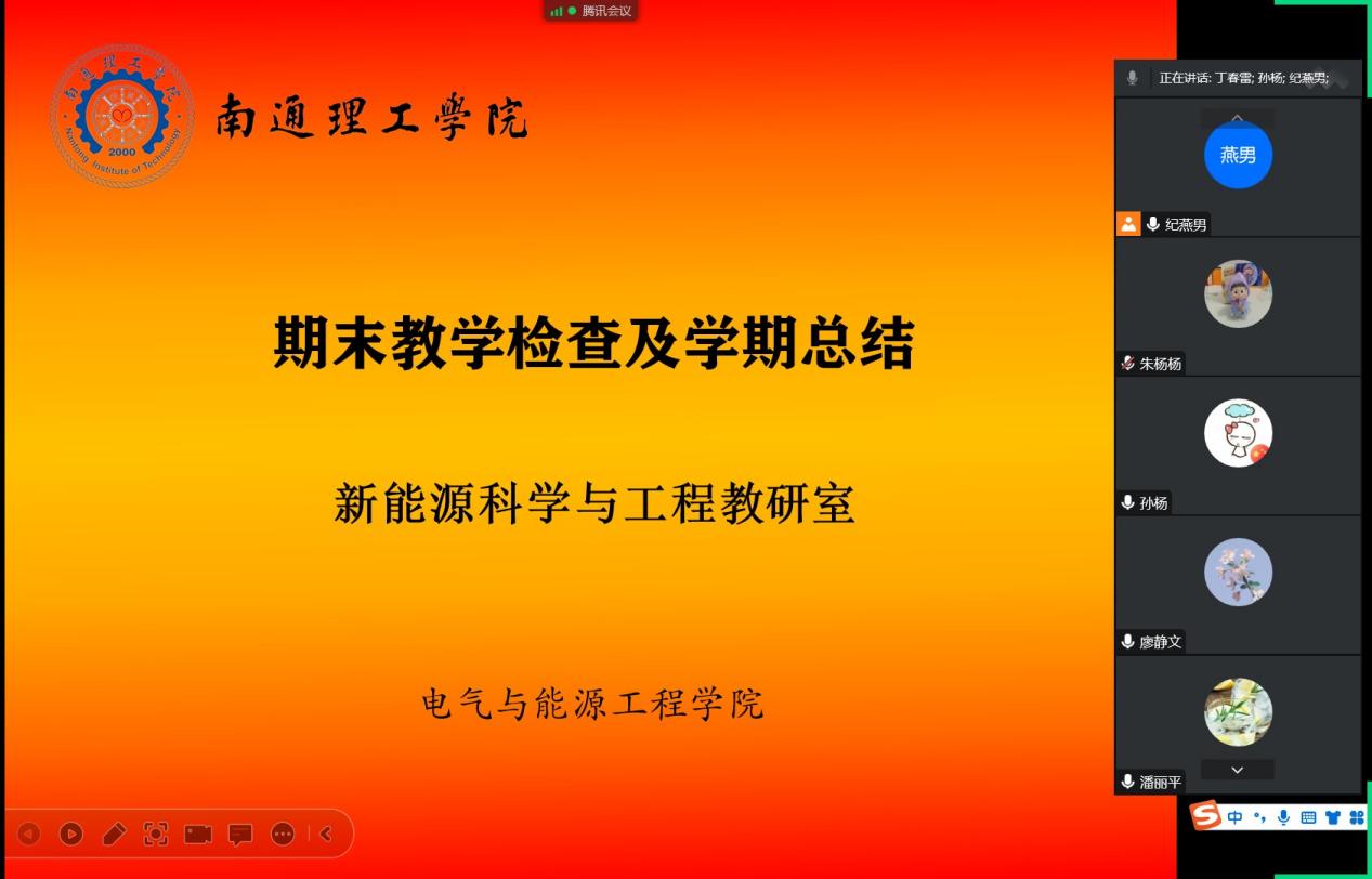 1月10日下午,新能源科学与工程教研室在线上召开了“期末教学检查及学期总结”会议,会议由教研室主任纪燕男老师主持,全体教研室教师参加。