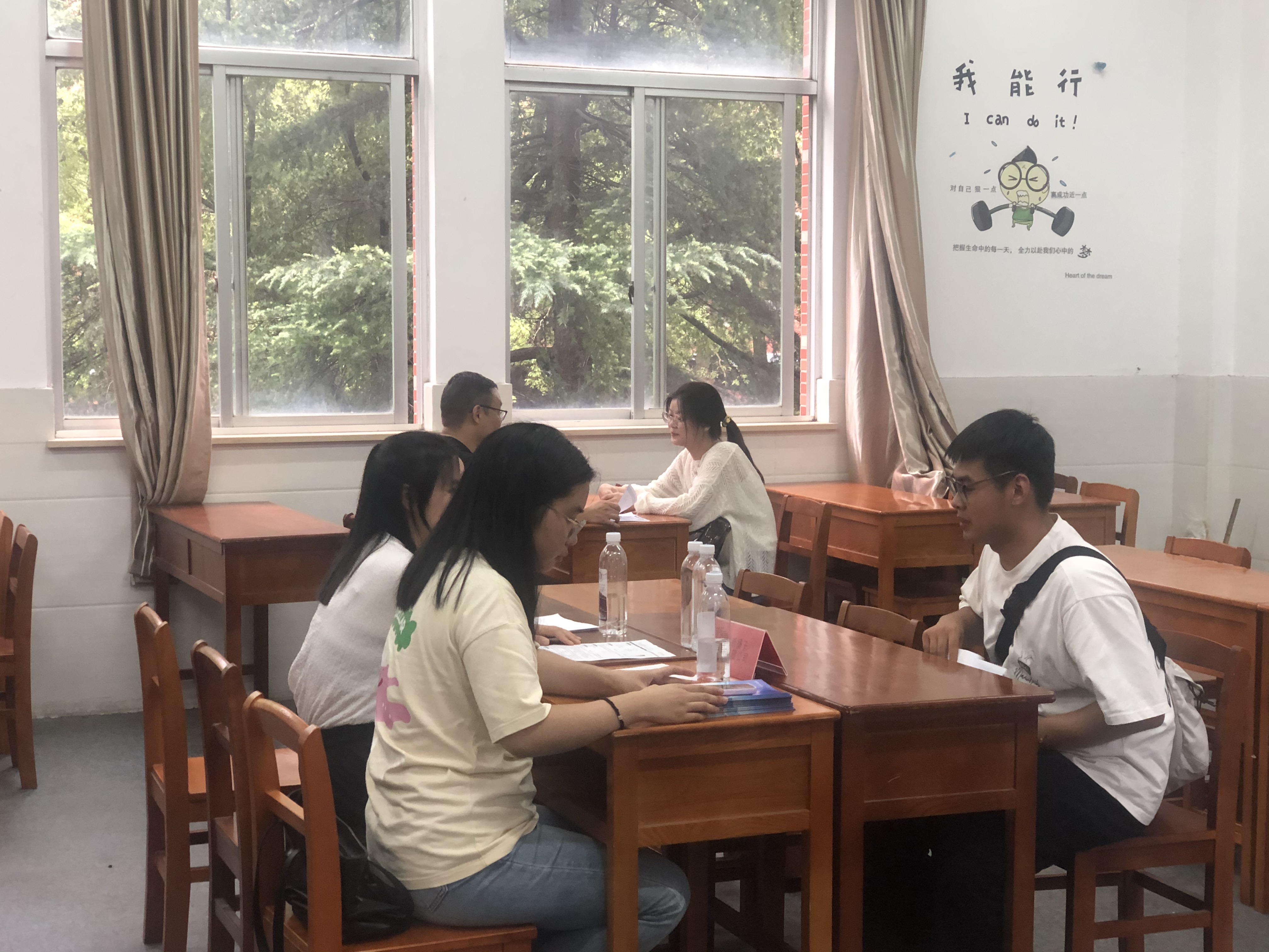 在企业进行宣讲后,宣讲企业随即便在附近教室展开了现场面试。同学们紧抓校招机会,认真的向面试官们介绍自己,希望能够进入其公司大展宏图。