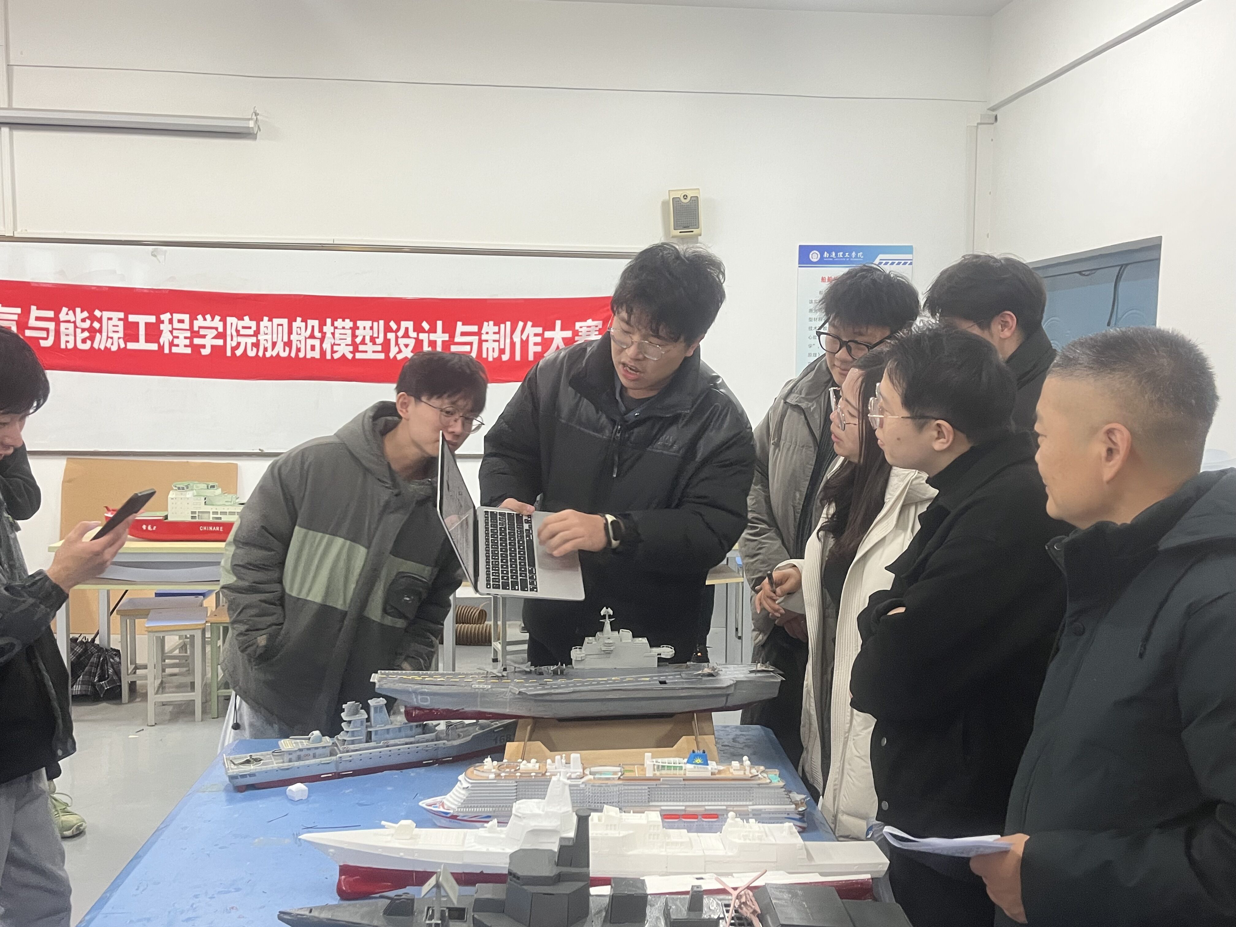 在比赛现场,参赛队伍展示了各自独特的舰船模型设计,并进行了精彩的演示。这些模型不仅在外观设计上别具匠心,而且在技术细节和工艺制作上也体现出高水平。评委团由电气与能源工程学院的专业老师组成,他们从设计创新、制作工艺、模型性能等多个方面进行了细致的评分。