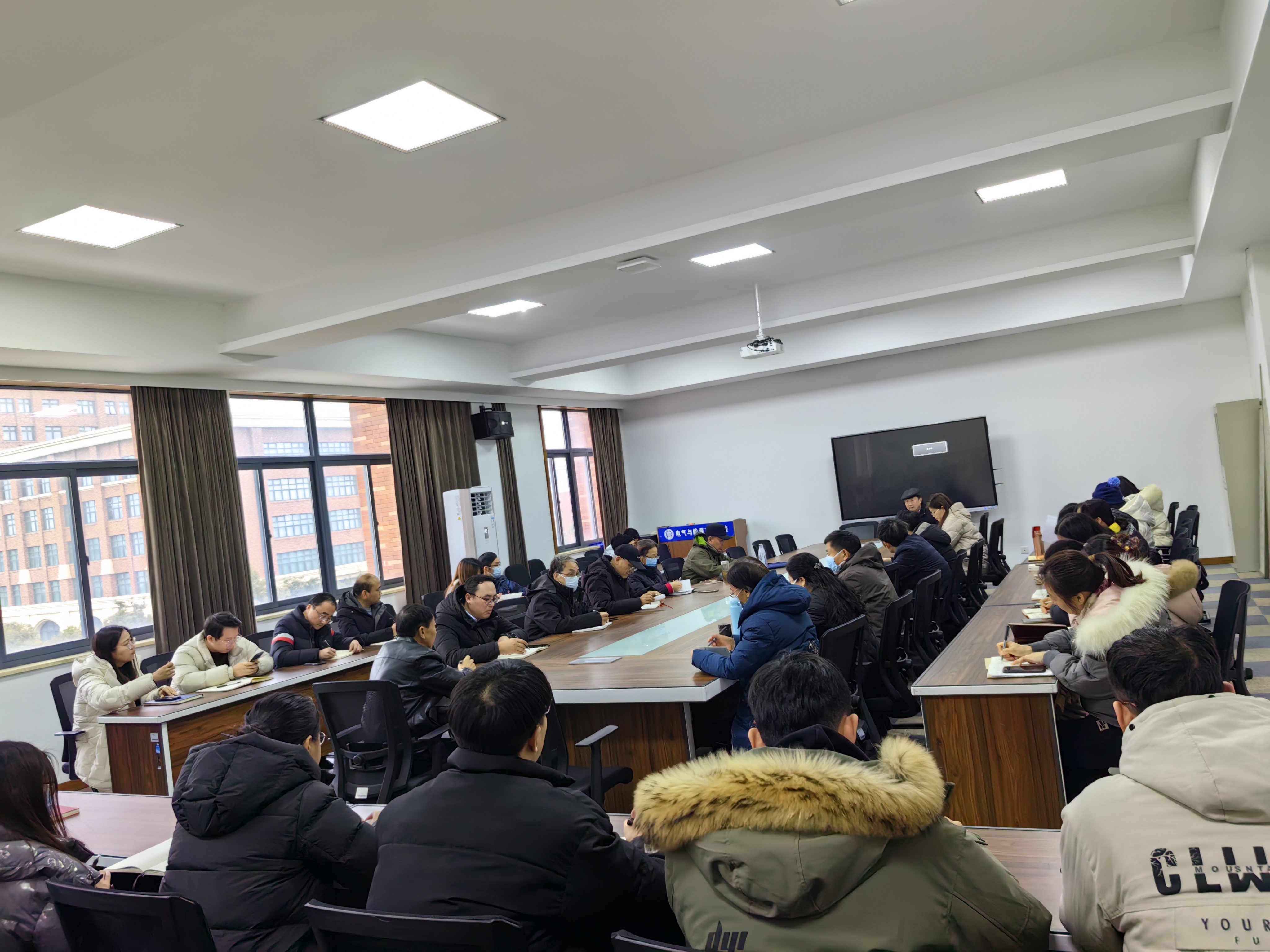 2024年1月3日下午,电气与能源工程学院在电气楼304召开全院教职工会议。会议由吴建国院长主持,副院长卢卫萍及全体教职工参会。