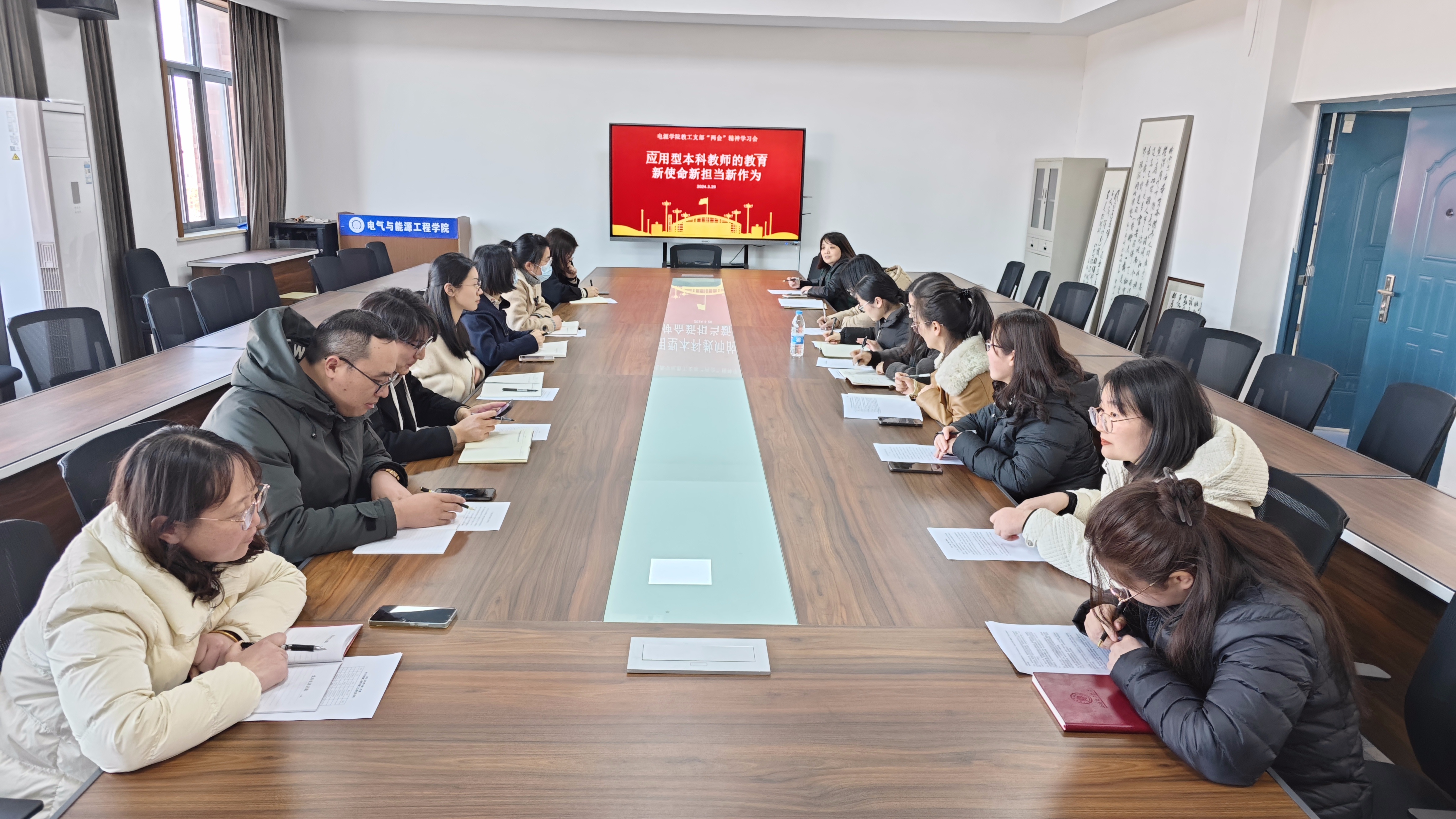 3月20日下午,电气与能源工程学院教工党支部组织教师党员学习“两会”精神,会议主题是应用型本科教师的教育新使命新担当新作为,由支部书记高洁主持,教工党支部全体教师参加。