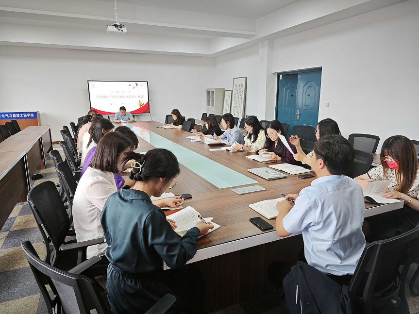 根据学校党委统一部署,5月29日,电气与能源工程学院教工支部开展党纪学习教育专题学习会。会议由电气与能源工程学院党总支副书记张小顺主持。电气学院教工支部全体党员参加会议。
