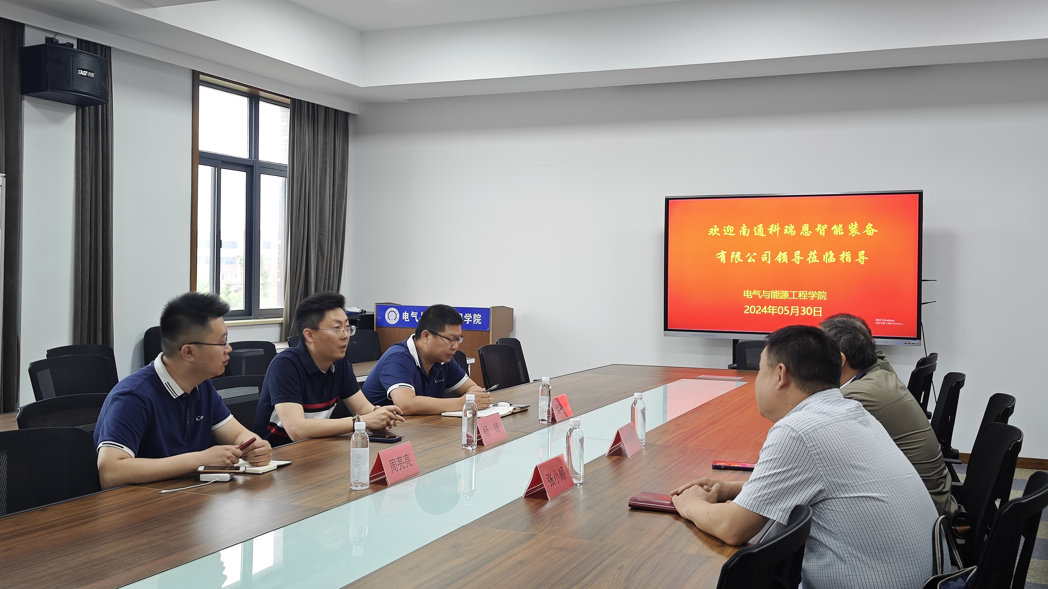 5月30日,南通科瑞恩智能装备有限公司总经理杨锋一行来院座谈交流,洽谈深化校企合作、人才需求等事宜。学院院长吴建国,党总支副书记、副院长张小顺,瞿遂春教授参加座谈交流。