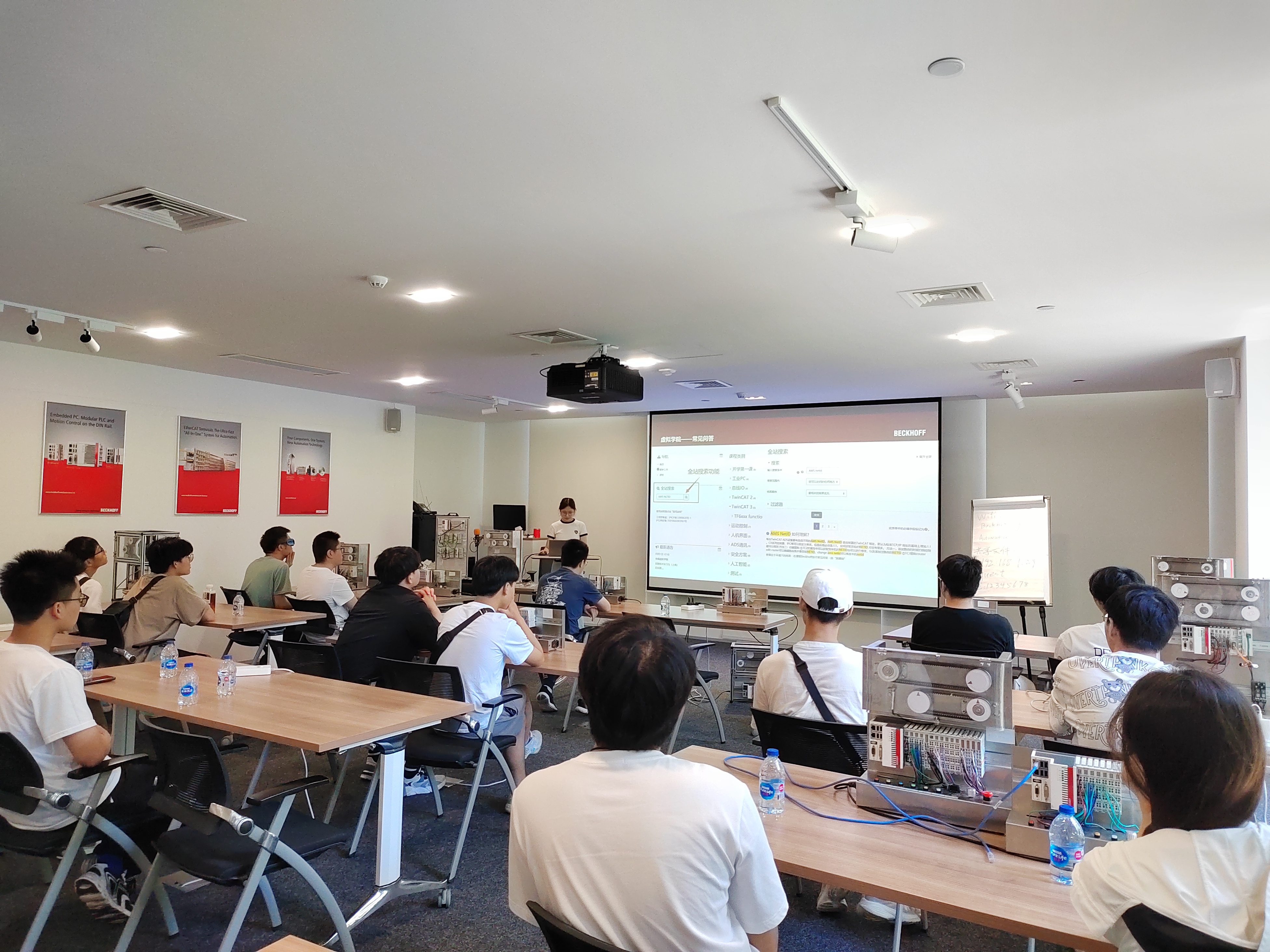 随后,他们移步至二楼的培训教室。倍福的培训师详细介绍了公司的发展历程,从创业初期的艰辛到如今成为全球自动化制造业的领导者。特别强调了倍福产品在推动工业4.0的重要作用,以及公司如何通过持续创新为客户提供开创性的技术和解决方案。