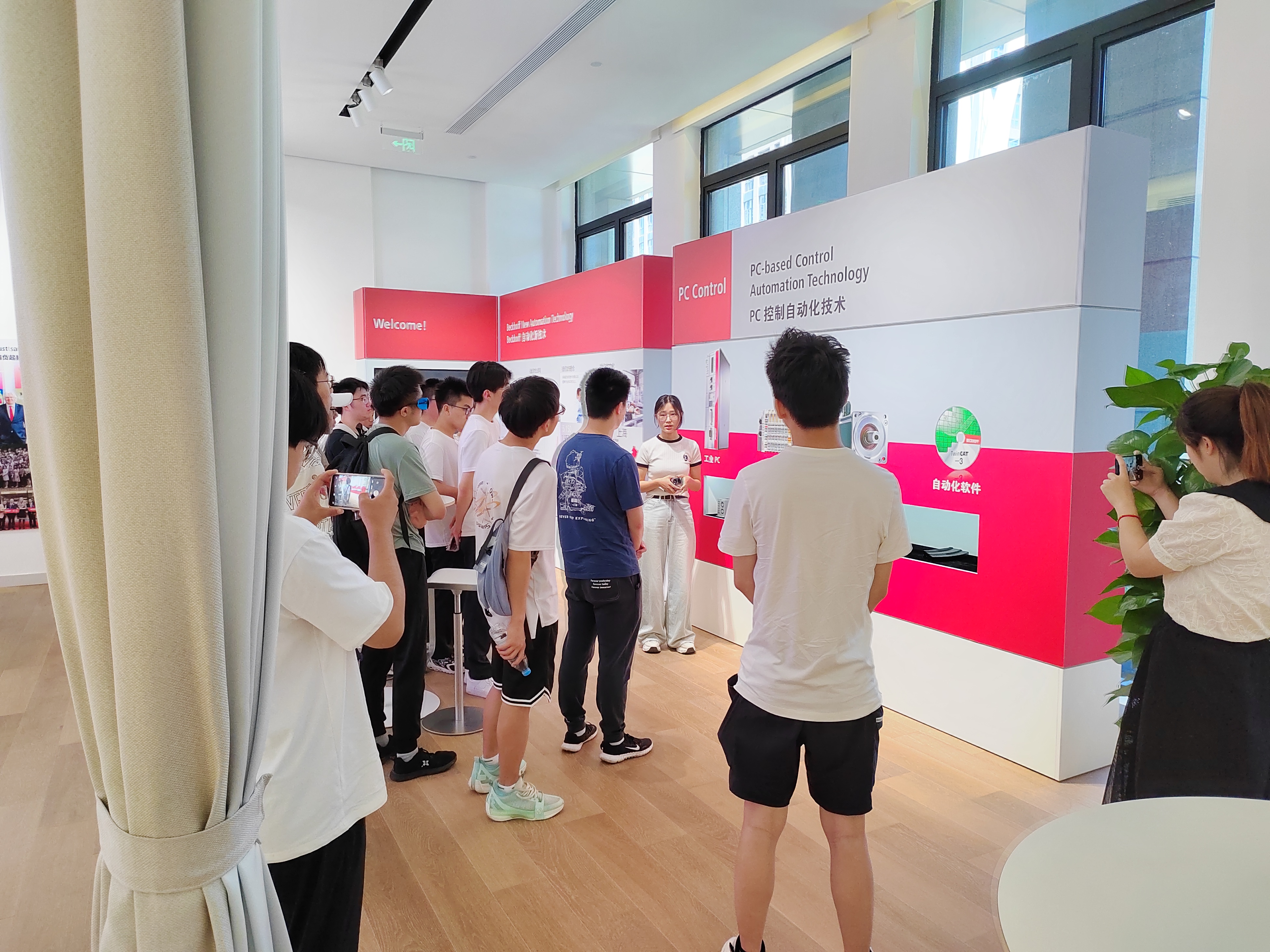 倍福中国团队热情欢迎南通理工学院师生的到来。工作人员细心安排,将学生分成两组,由经验丰富的工程师陪同,开始了他们的探索之旅。