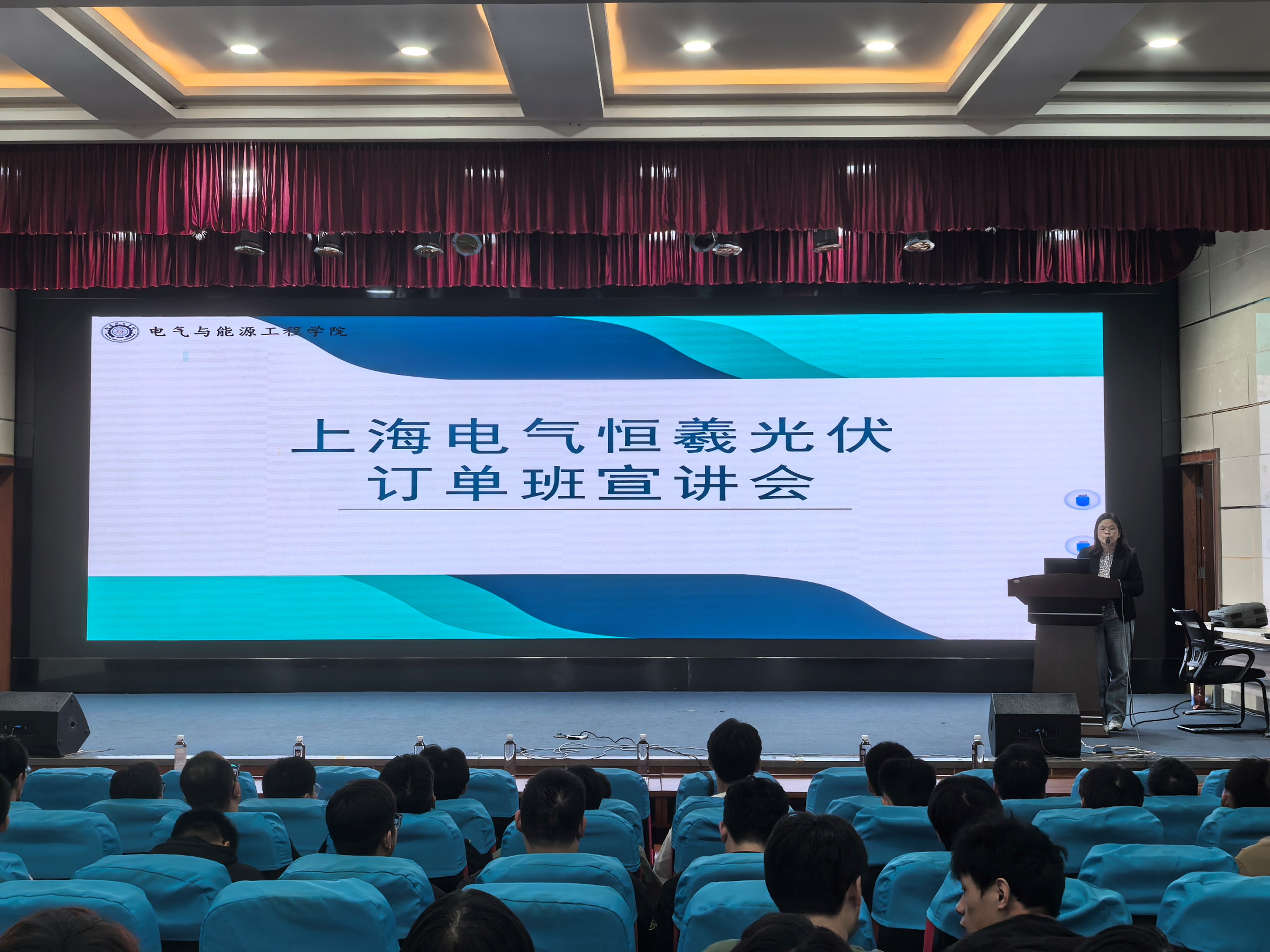 10月9日下午,电气与能源工程学院上海电气恒羲光伏企业订单班宣讲会顺利召开,上海电气集团恒羲光伏科技有限公司人事部总监/订单班企业负责人张明敏、学院副书记张小顺、就业办主任张优美,新能源科学与工程、电气工程及其自动化专业学生参加会议。会议由电气与能源工程学院副院长、订单班学校负责人卢卫萍主持。