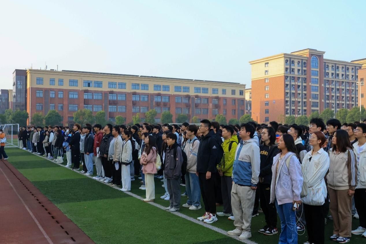 为了激发我院学生爱国热情,培养荣誉感、责任感,11月4日清晨,我院于操场举行隆重而庄严的升旗仪式。学院全体大二学生和辅导员老师、分团委副书记参加仪式。