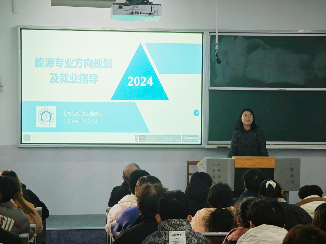 秦四娇老师首先结合能源专业的人才培养方案,对同学们下学期即将面临的专业方向选择进行了全面解读。她深入分析了当前市场需求和行业发展现状,指出光伏与风电领域均具备良好的就业前景。通过对三个重点企业的详细介绍,秦老师从单位背景、岗位需求和薪资水平等方面,引导同学们认清行业机遇,并鼓励大家结合自身兴趣,锚定目标,早日规划职业发展。