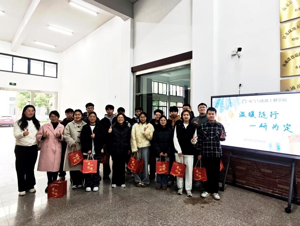 2025年考研进入了冲刺阶段,为了在这个关键时刻给予我院考研学子最坚实的支持与鼓励,帮助他们有效缓解备考过程中累积的紧张情绪与心理压力,电气与能源工程学院于12月6日下午在电气楼一楼大厅开展了“温暖随行,一研为定”考研助力活动,用关怀与爱为学子们的考研之路注入力量。学院副院长卢卫萍、就业指导办公室主任张优美、分团委副书记刘婧雯以及全体大四辅导员参与本次活动。