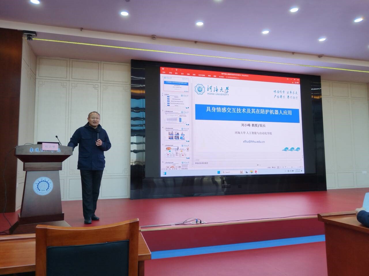 12月9日上午,电气与能源工程学院邀请河海大学人工智能与自动化学院院长刘小峰在图书馆天南厅做了以《具有情感交互技术及其在陪护机器人应用》为主题的学术讲座。会议由电气与能源工程学院院长主持,部分教师和学生代表聆听了本次讲座。