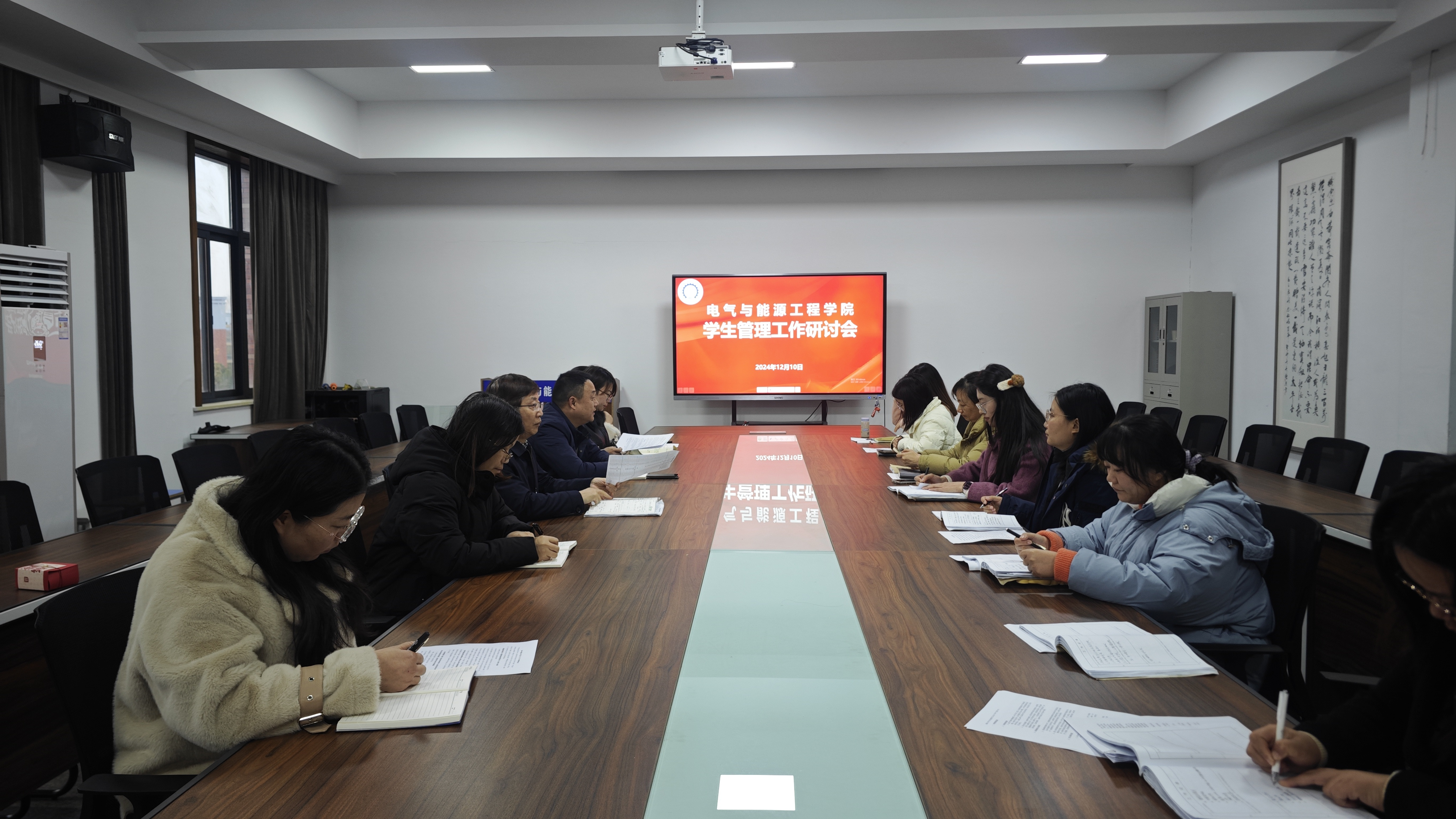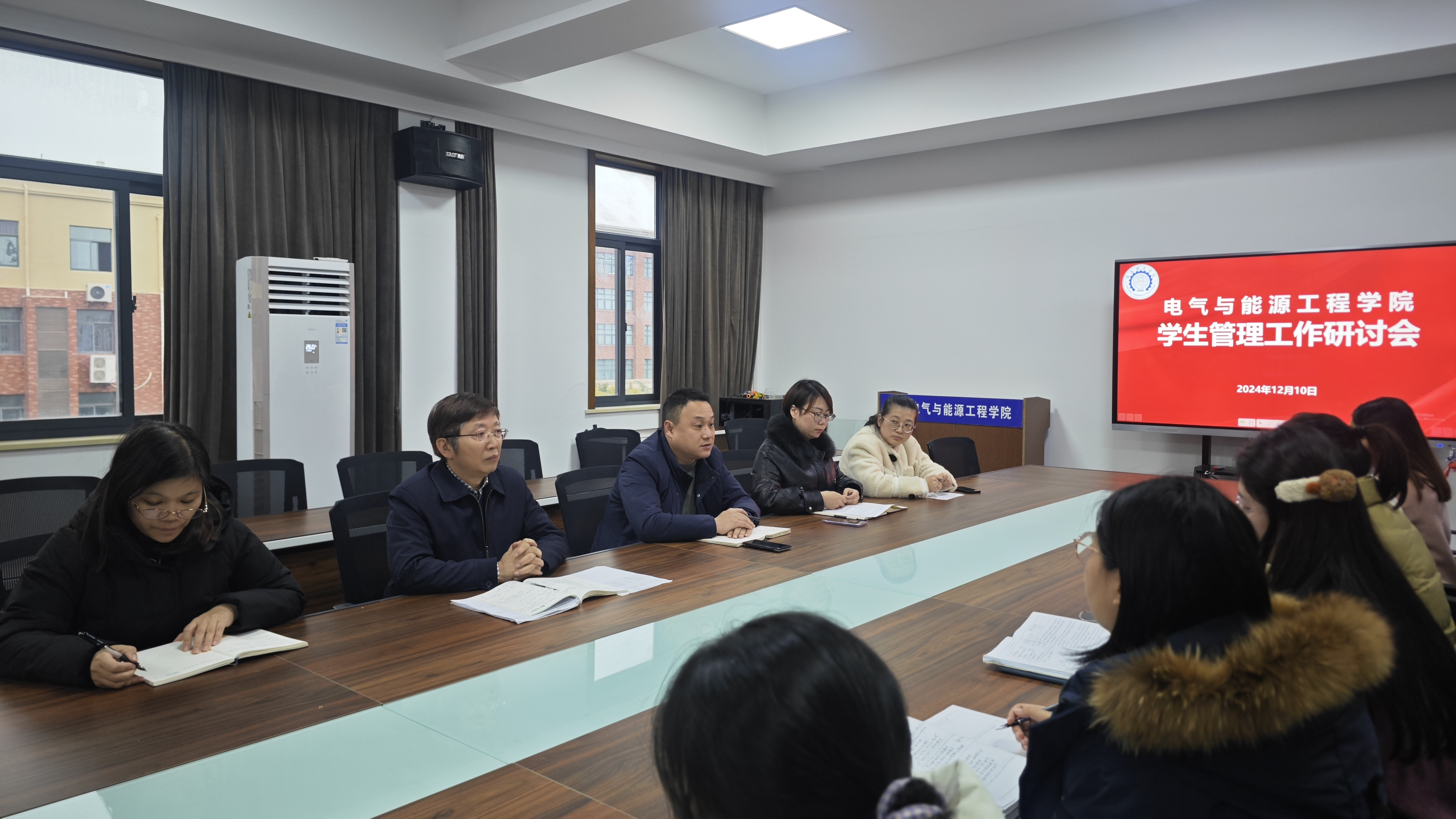 12月10日下午,电气与能源工程学院在学院会议室成功举办学生管理工作研讨会。学院党总支书记、院长,副书记、副院长张小顺,副院长卢卫萍,就业指导办公室主任张优美、两校区分团委副书记刘婧雯与陈蓓蓓以及学院全体辅导员齐聚一堂,共同围绕学生管理工作的创新与优化展开深入研讨,为学生成长和学校发展凝心聚力。
