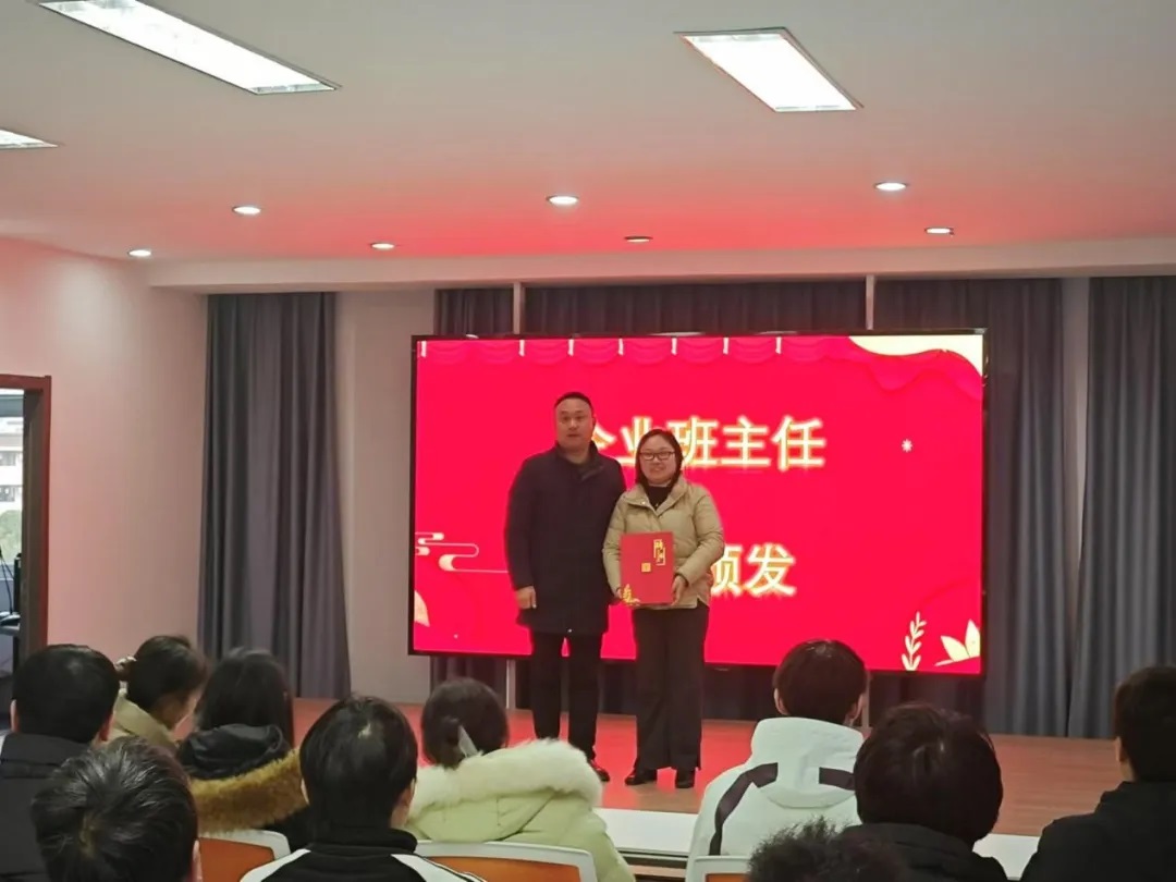 班会期间,电气与能源工程学院企业班主任—江苏涵润汽车电子有限公司总经理助理、人力资源部主任陈晓星谈及就业形势,直言当下市场竞争白热化,毕业生人数连创新高,岗位增量却相对有限。在就业方向上,指出科技领域研发岗求贤若渴,尤其是人工智能、芯片研发;新能源产业从制造到运维全线缺人,绿色转型催生大量机会,劝诫同学们依自身优势早布局。在热烈氛围中,电气与能源工程学院党总支副书记、副院长张小顺庄重地将企业班主任聘书递到总经理助理陈晓星手中,全场目光聚焦。