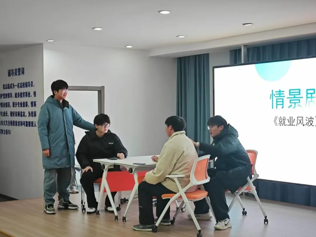 班会开始前,同学们带来一场别开生面的就业小情景剧,生动演绎求职路上的诱惑与抉择,瞬间拉近距离,点燃全场氛围。随后,辅导员李双洁以专业剖析与暖心引导,带大家直面就业形势,探寻职业方向,为未来“加速”。