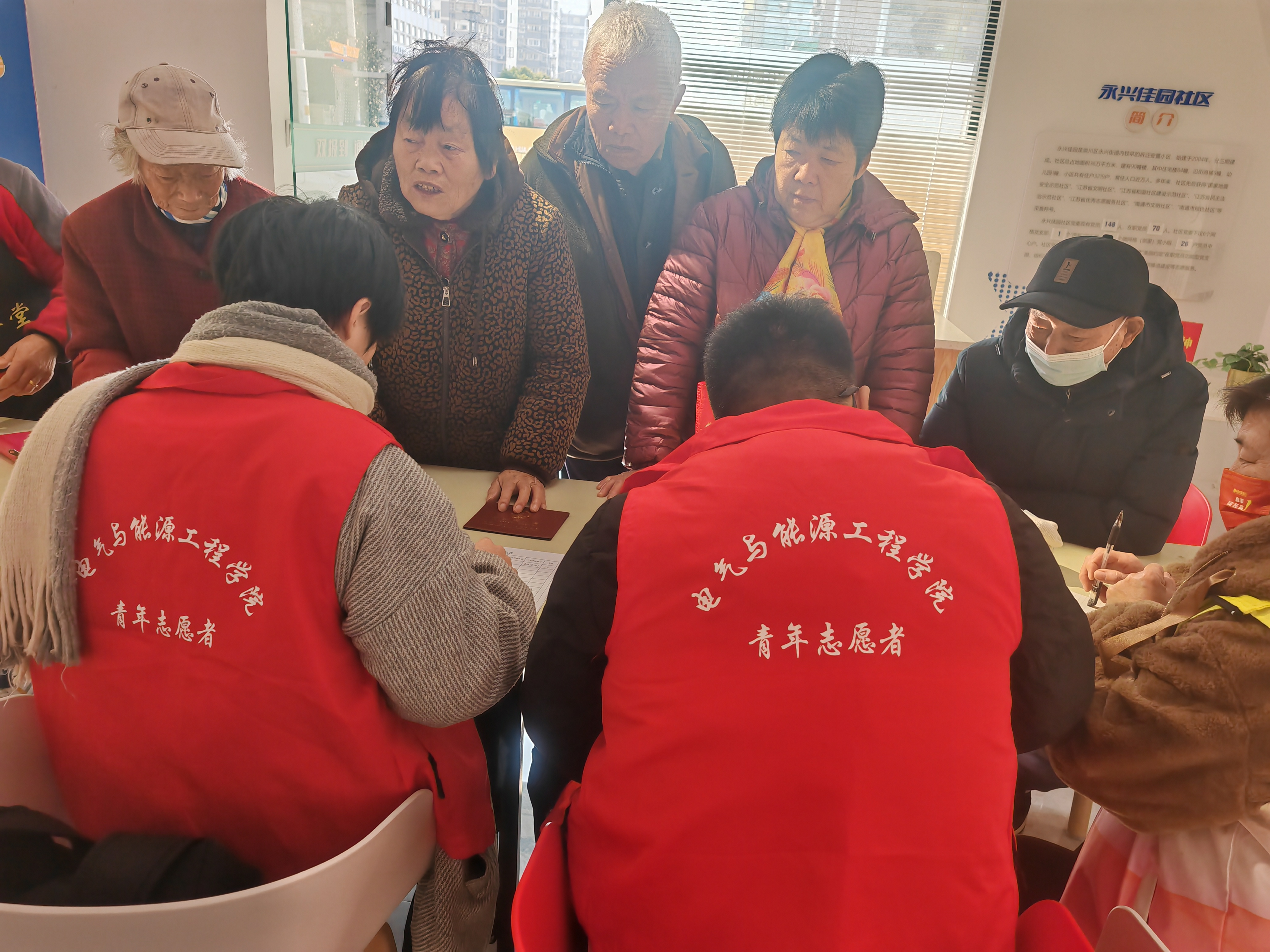 2024年12月21日至22日,电气与能源工程学院新能源科学与工程2301团支部、2302团支部,组织了一支由8名志愿者组成的队伍,深入永兴佳园社区,开展了一项针对70岁以上老人的信息排查与居民基本情况调查的志愿服务活动。