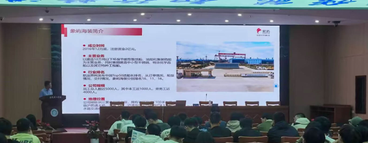10月10日下午,我院邀请南通象屿海洋装备有限责任公司举行专场招聘宣讲会,旨在为我院 2025 届毕业班学生提供优质的就业机会和职业发展平台,吸引了众多师生的积极参与。学院党总支副书记、副院长张小顺也亲临现场。