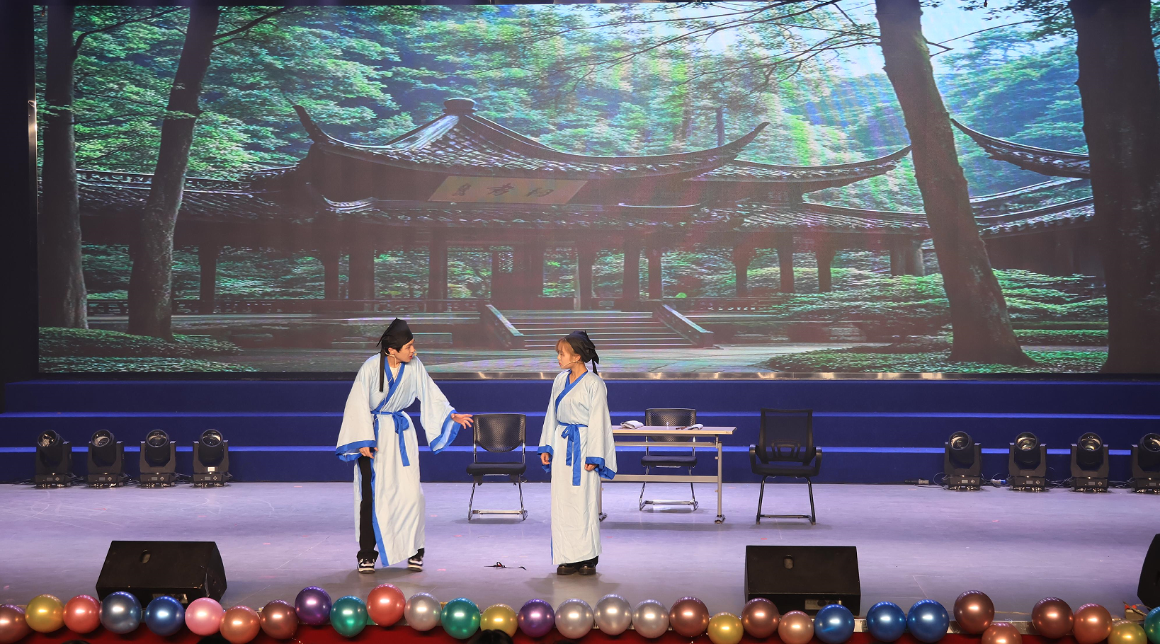 古筝与琵琶的合奏《寄明月》如诗如画,旋律悠扬,引领观众步入了一个宁静美好的月夜,令人陶醉。大学生广播站播音部带来的朗诵《万松书院》则以独特的语言艺术,生动讲述了书院的历史故事,为观众带来了别样的听觉盛宴。