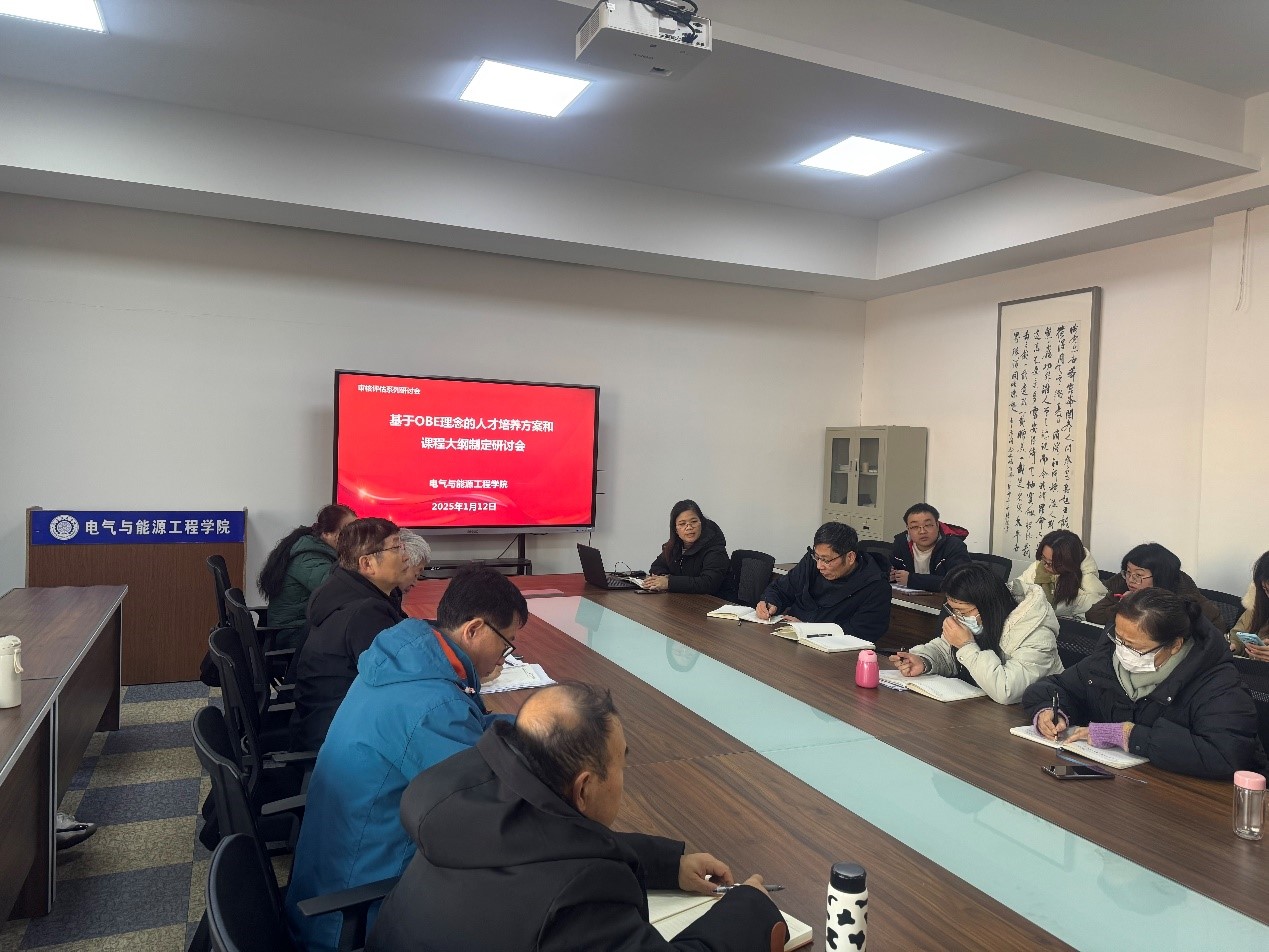 为进一步落实OBE理念,做好专业和课程的顶层设计,2025年1月12日,电气与能源工程学院于电气楼304会议室开展审核评估系统研讨会——基于OBE理念的人才培养方案和课程大纲制定研讨会。会议由电气与能源工程学院副院长卢卫萍主持,学院院长、全体专任教师参会。