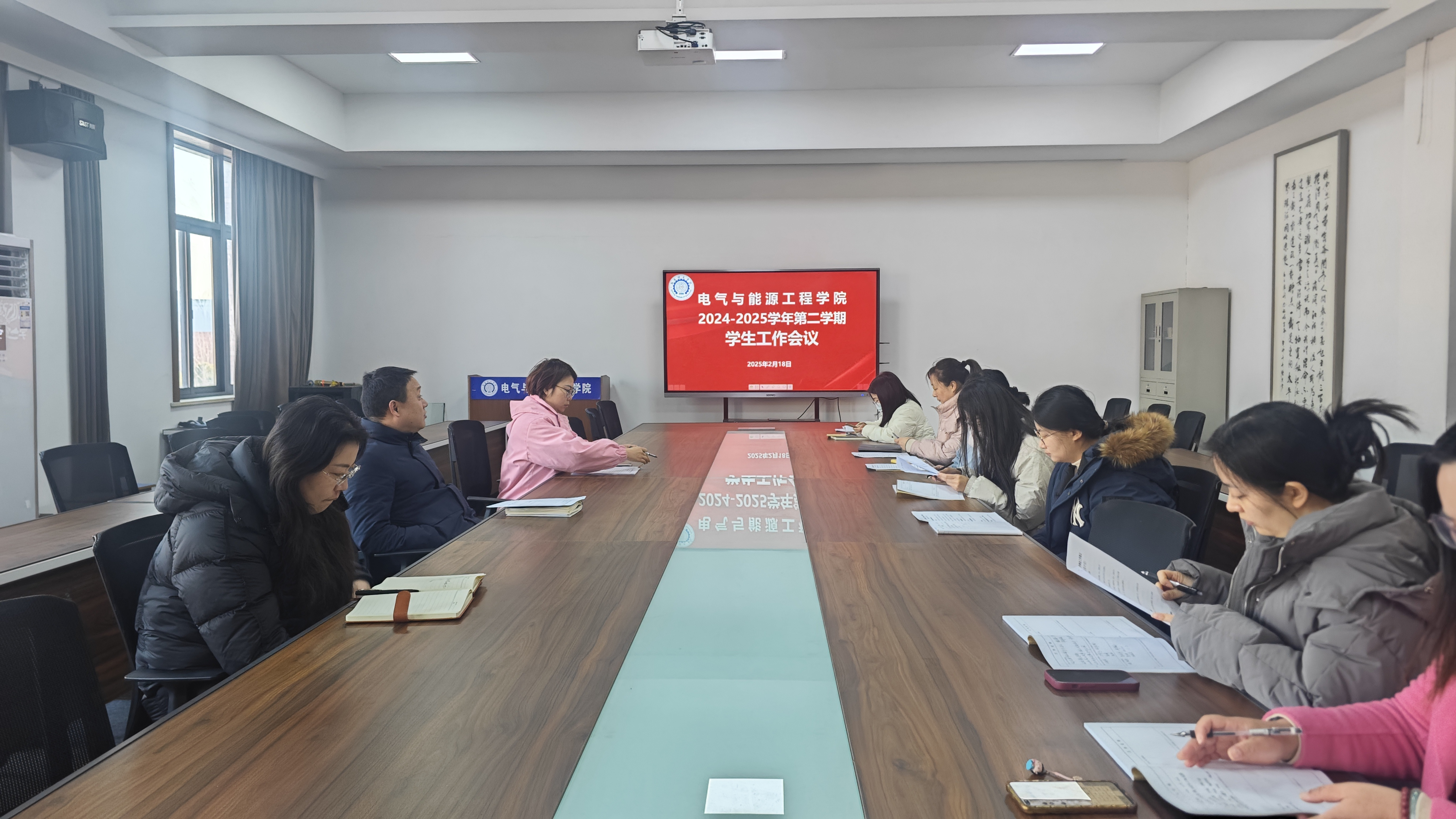 2025年2月18日上午,电气与能源工程学院在电气楼304会议室召开新学期学生工作会议,旨在为新学期的学生工作指明方向、明确目标。此次会议由学院党总支副书记张小顺主持,就业指导办公室主任张优美、分团委副书记刘婧雯及全体辅导员参加会议。
