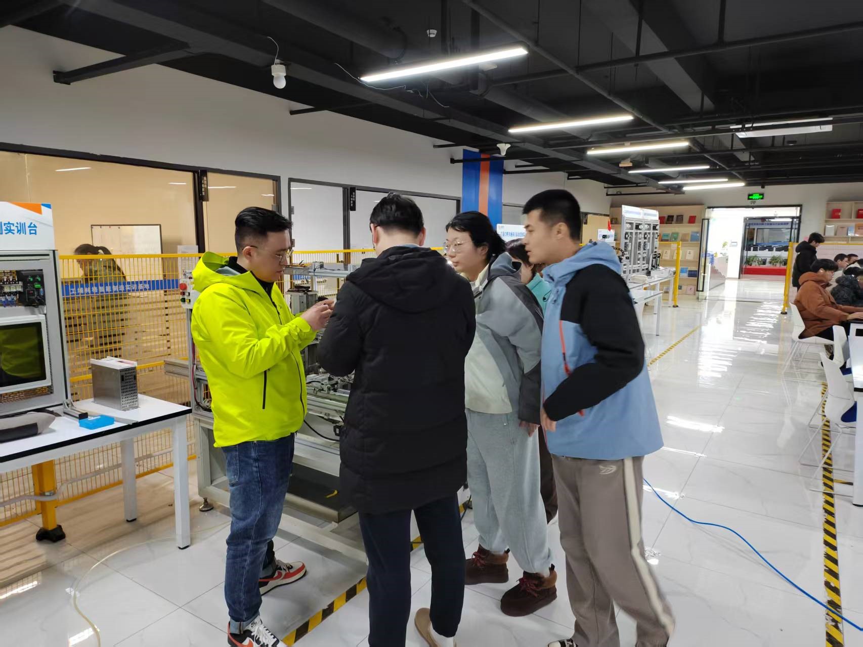2025年2月20日,电气能源与工程学院的范煜、王美玲、朱晟辉、赵茜、李俣辰五位老师前往南通工埔林格智能制造培训基地,开展了一场富有成效的交流学习活动。该基地隶属于江苏林格自动化科技有限公司,拥有众多完整及曾投产的工业自动化生产线。本次交流学习重点研究了倍福PLC控制的全自动套管绕线机,同时对电气控制柜、工控台面及电气自动化工控台面进行了细致观摩。基地丰富的实操设备和贴近实际工业生产的场景,为老师们提供了宝贵的实践经验。