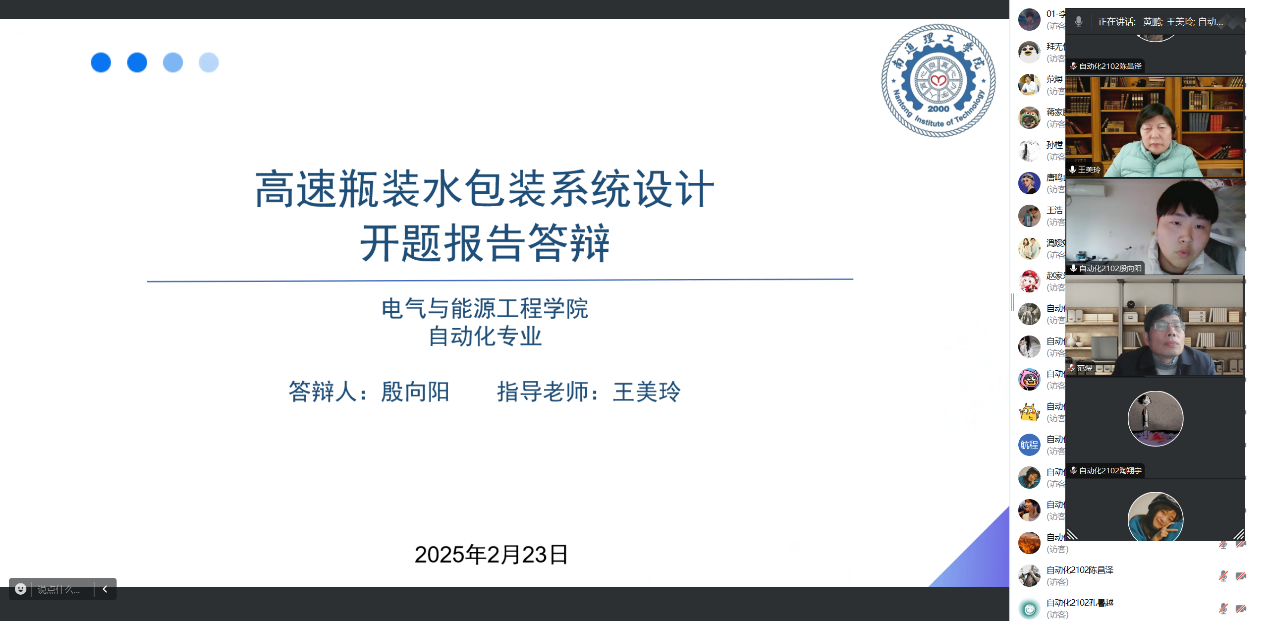 此次开题答辩不仅检验了学生的前期准备工作,也为后续论文写作奠定了良好基础。相信在全体师生的共同努力下,2025届自动化专业本科生毕业论文工作将取得圆满成功。(文/摄 高洁)