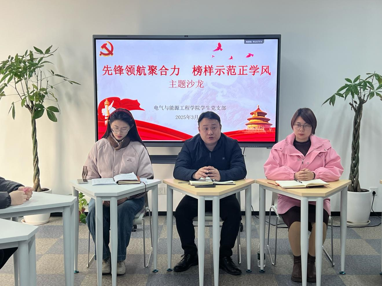 为强化党建引领,激发我院学生党员先锋意识,3月19日,电气与能源工程学院于“翰墨社区”开展“先锋领航聚合力,榜样示范正学风”主题党员学习交流活动。学院党总支副书记、副院长张小顺出席活动,学院分团委副书记刘婧雯主持活动,教师党员、在校学生党员代表共15人参加。