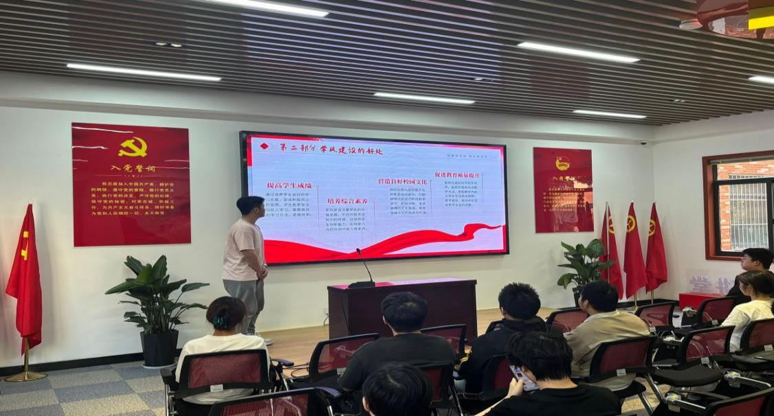 活动中,党员代表电气2204班陈中意同学、电气2203班蒋昕宇同学和电气2201班孙梓翔同学围绕“学生党员如何在学风建设中做出贡献”展开阐述。学风,作为大学精神的集中体现,是高校立校之本与发展之魂,其重要性不言而喻。优良学风不仅是教育教学质量的根本保障,更是学生综合素质的重要体现。