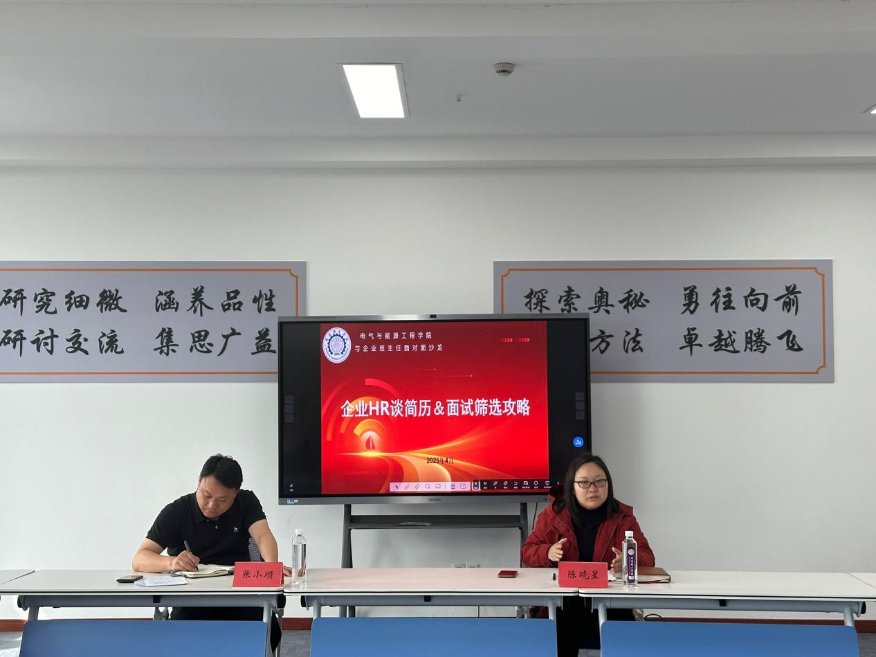 为提升辅导员大学生就业指导能力,4月17日下午,电气与能源工程学院邀请学院企业班主任——江苏涵润汽车电子有限公司人力运营部经理助理陈晓星,于图书馆 7 楼研讨室举办 “与企业班主任面对面” 沙龙活动。学院全体辅导员与企业班主任齐聚一堂,围绕学生就业竞争力提升展开深度探讨,此次沙龙由学院党总支副书记、副院长张小顺主持。