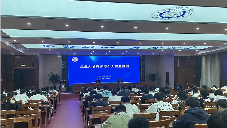 4月17日下午,电气与能源工程学院在图书馆5 楼海北厅举办 “企业人才需求与个人职业发展深度解析”主题讲座 ,主讲人为中天科技集团人力资源部培训经理薛峰,讲座由学院党总支副书记、副院长张小顺主持。